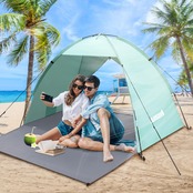 ビーチ テント 2~3人用 サンシェード 190T銀塗り UPF50+ 日除けテント 210D防水 PU2000mm 日差し対策 通気 簡易設置 軽量 アウトドア/公園/お花見/運動会 ペグ8本付き 4本ロープ 収納袋付