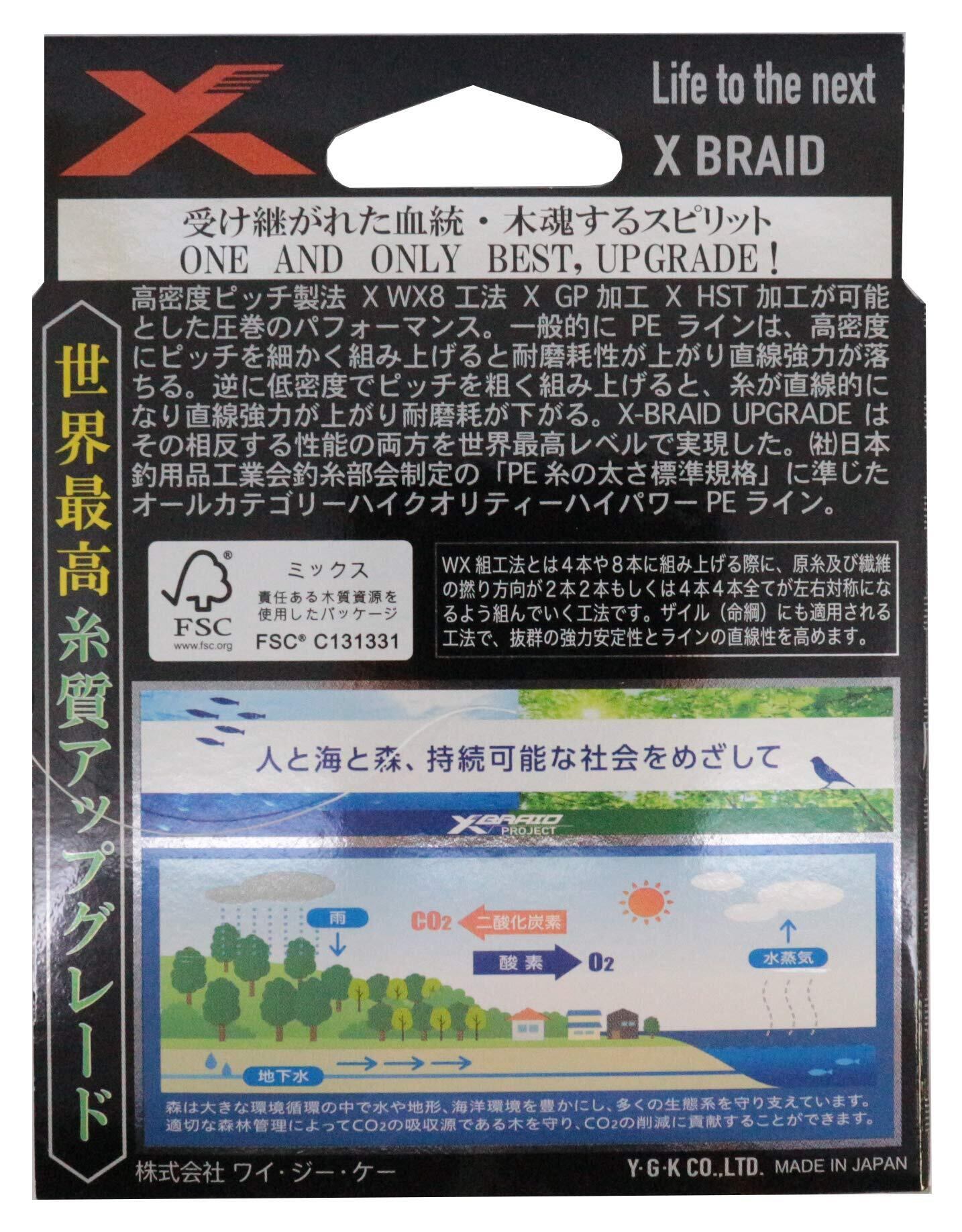 高密度ピッチ製法× WX8工法 × GP加工 × HST加工が可能とした圧巻のパフォーマンス。一般的にPEラインは、高密度にピッチを細かく組み上げると耐磨耗性が上がり直線強力が落ちる。逆に低密度でピッチを粗く組み上げると、糸が直線的になり直線強力が上がり耐磨耗が下がる。X-BRAID UPGRADは、その相反する性能の両方を世界最高レベルで実現し、(社)日本釣用品工業会釣糸部会制定の「PE糸の太さ標準規格」に準じたオールカテゴリーハイクオリティーハイパワーPEラインです。