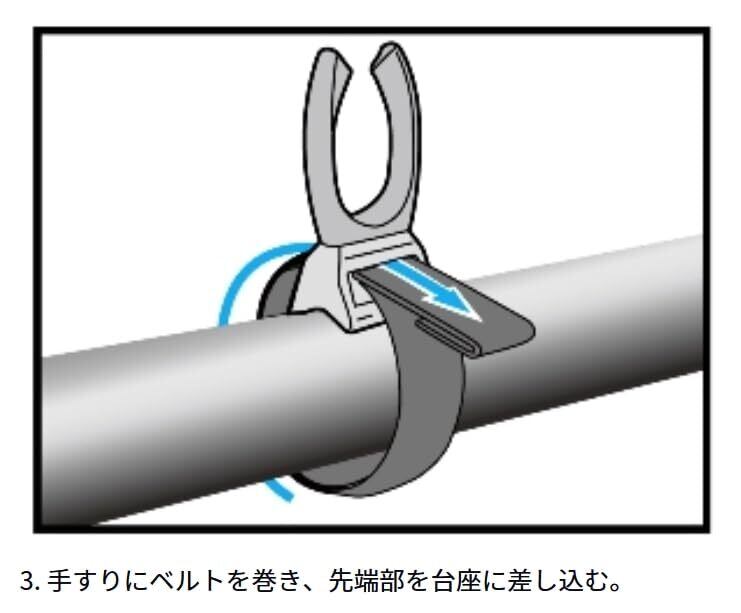 面ファスナーベルトで海釣り施設や堤防の手すりなどに取り付け可能