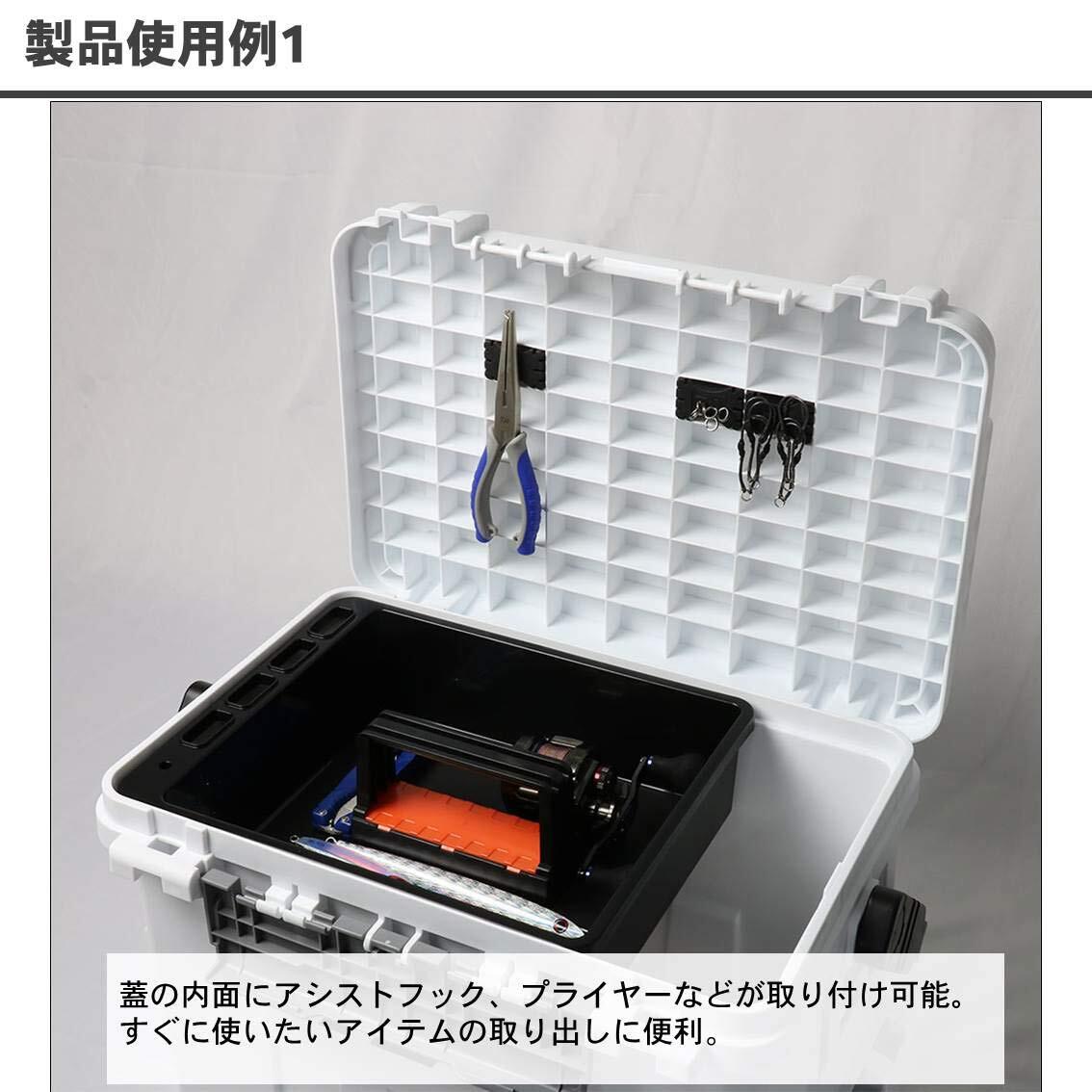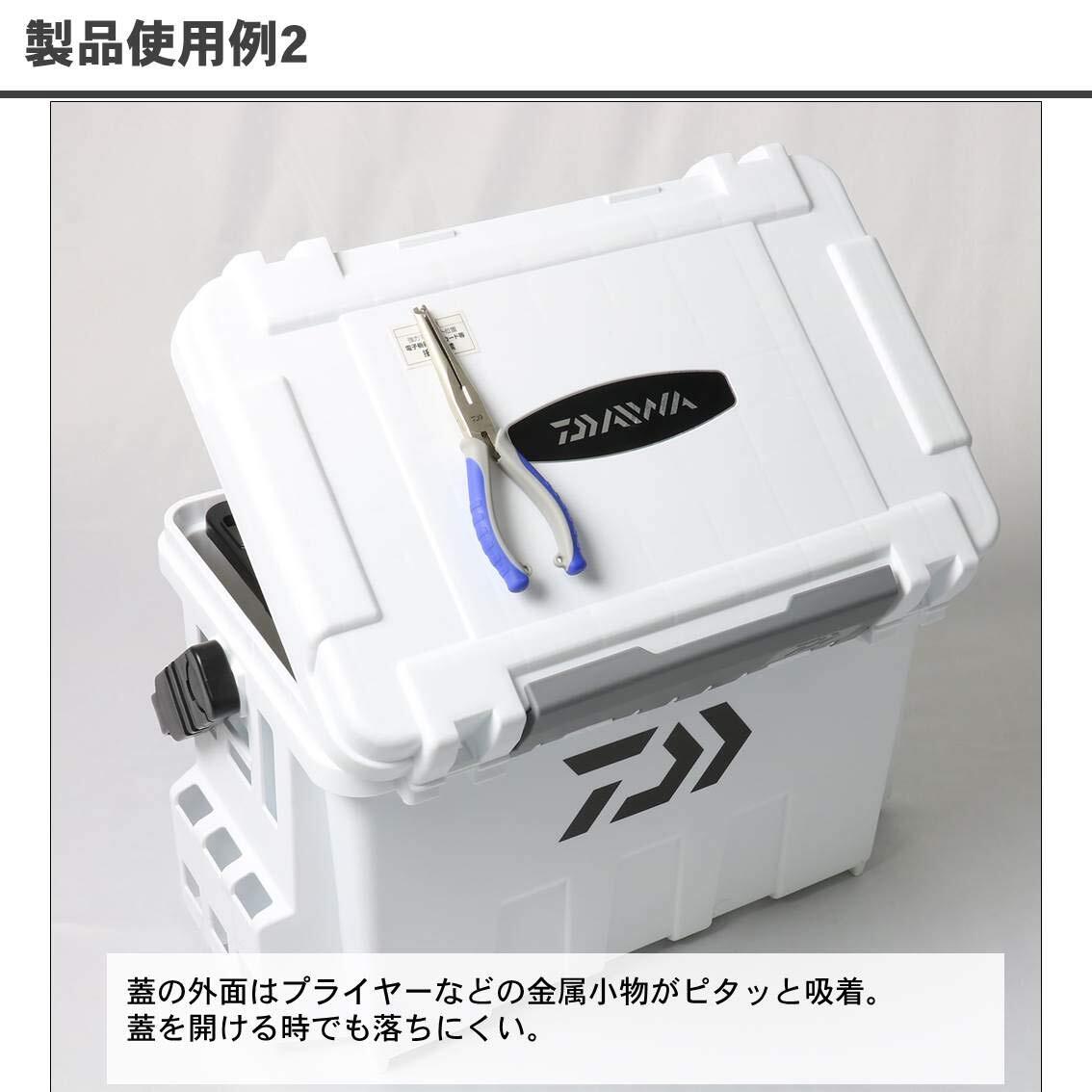 蓋の外面はプライヤーなどの金属小物がピタッと吸着、蓋の内面にアシストフックなどが取り付け可能。