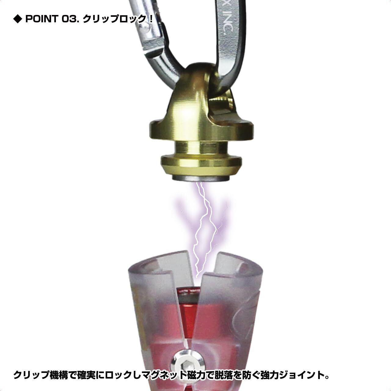 クリップ機構で確実にロックし、タックルの脱落を防ぐ強力ジョイント。タックルを外すときはクリップをつまんで開くだけ。装着はマグネットの磁力でクリップの挟み込みをオートアシスト。