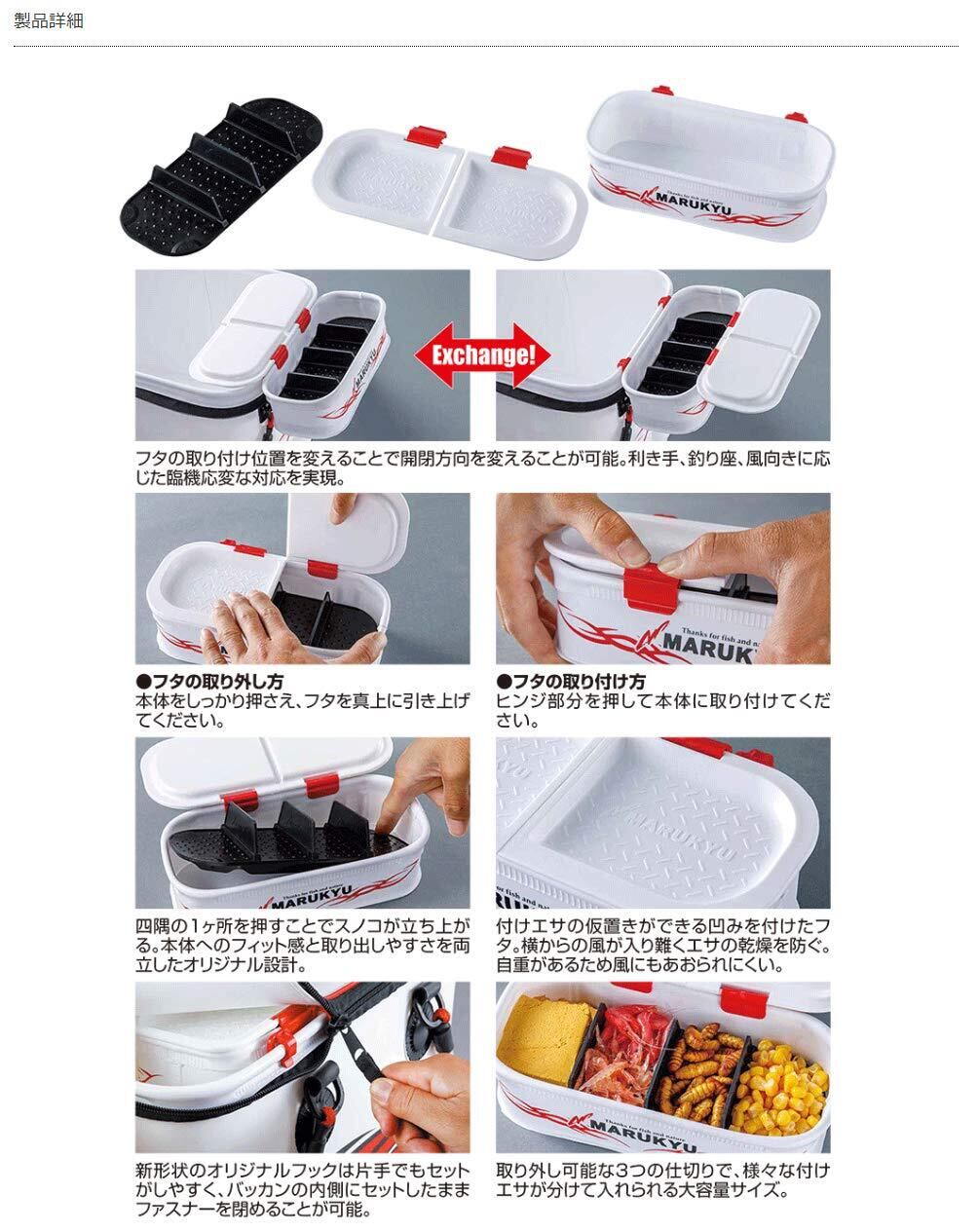 ■ ●フタの開閉方向が選べる大容量エサバケット サイズは36cmバッカンの短辺にピッタリな大きさ。 取り外し可能な仕切り板を3枚装着でき、さまざまな付けエサを分けて入れることができます。 フタと本体は新機構オリジナルパーツにより、着脱が可能。利き手、釣り座、風向きに応じて開閉方向を変えることができます。 フタには適度な重さをつけることで密閉性がアップ。風にあおられにくく付けエサの乾燥を軽減します。 また左右別開きの設計にすることで、付けエサが外気に触れる時間を短縮し、鮮度を保持します。 スノコは本体に丁度収まる設計により、不意の落下や飛び出しが軽減。取り出す際は四隅の“PUSH"を1カ所押すことで、反対側が持ちあがる仕組みです。 そのほかにもバッカンの内側にセットしたままファスナーが閉められるショートフック※や、本体が前下がりになるのを防ぐ独自のフィンを装備し、使いやすさにもこだわった仕上がりに。 付けエサをたっぷり備えられ、快適な配置で釣りをお楽しみいただけるアイテムです。 ※他メーカーのバッカン使用の場合、ファスナーが閉まらない場合があります。 ■カラー:ホワイト、ブラック ■サイズ :23(W)×11.5(D)×6.5(H)cm ※製造上の都合により、細かな傷や擦れ等が生じている物もありますが、使用上の問題はございません。予めご了承ください。