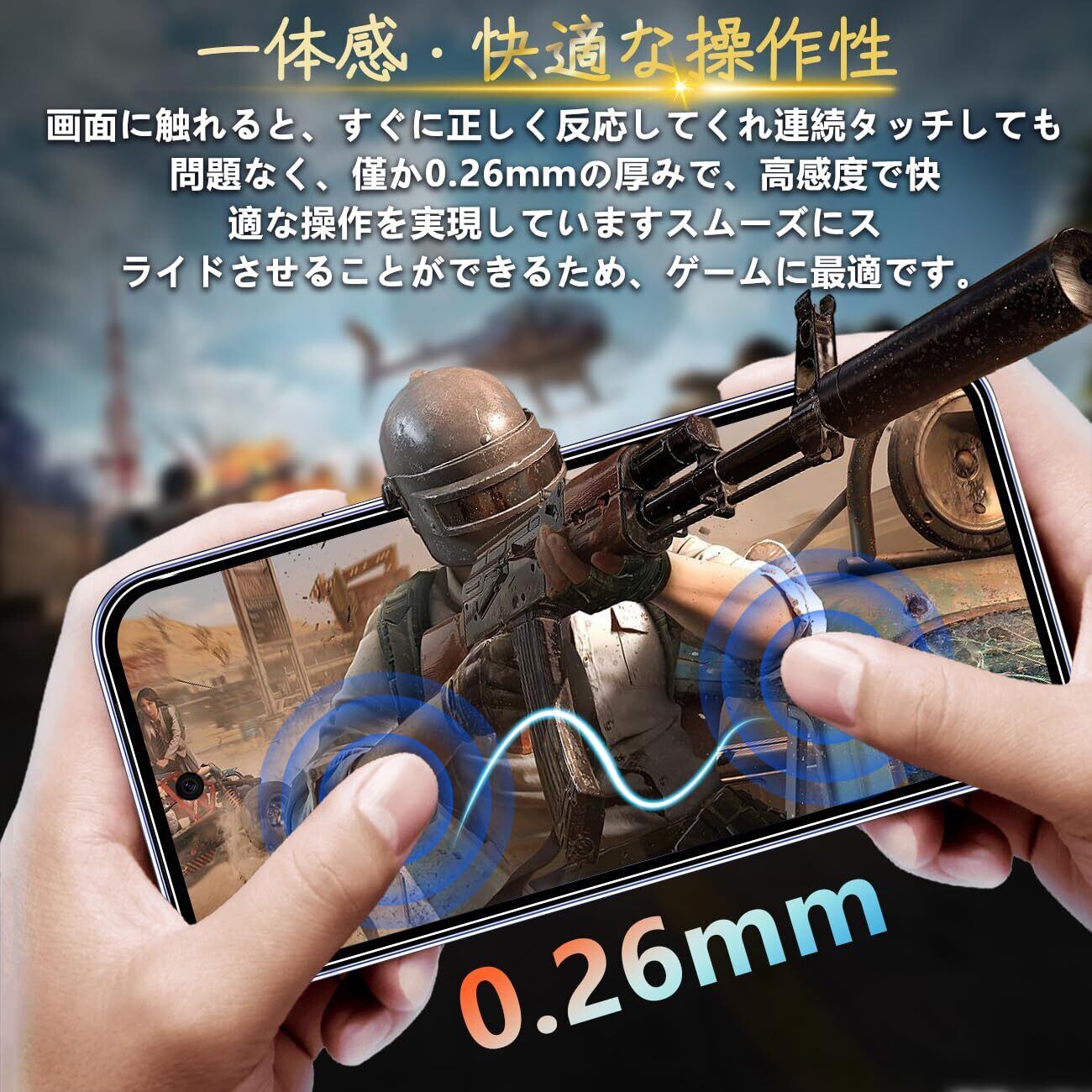 【汚れ防止&指紋防止 / 防水 / 耐油性】保護フィルム は、石材ナノコーティング層の最新の指紋防止技術を使用していますので、通常フィルム のようなラフなタッチは一切ありません。画面がさらさらで指紋が付きにくい、高感度で快適な操作を実現、汗防止、スムーズにゲームプレイ体験、長時間の楽しみなどの利点もあります。*万が一付着した指紋、水滴、汗、化粧品などは簡単に拭き取れます。市場に出回っている99%の携帯電話ケースと互換します;強化ガラスのサイズは携帯ケースを取り付けるためのスペースをよいし、両側が浮き上がらないようにします。何百もの携帯電話ケースがテストした後、適応率は 99% と高くなり、フィルム対応できる携帯ケースの心配がありません。