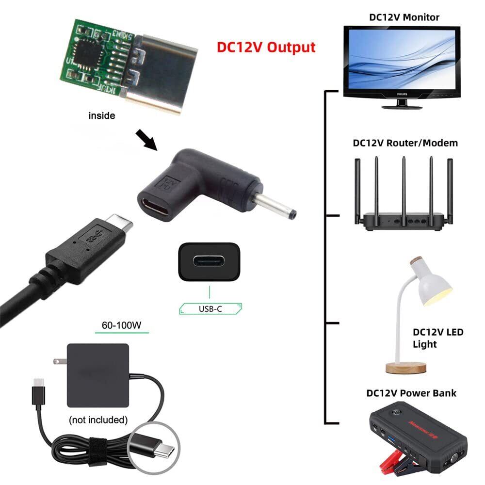 USB 3.1 Type C USB-C メス - DC 12V プラグアダプター PDエミュレータートリガー 90度角度