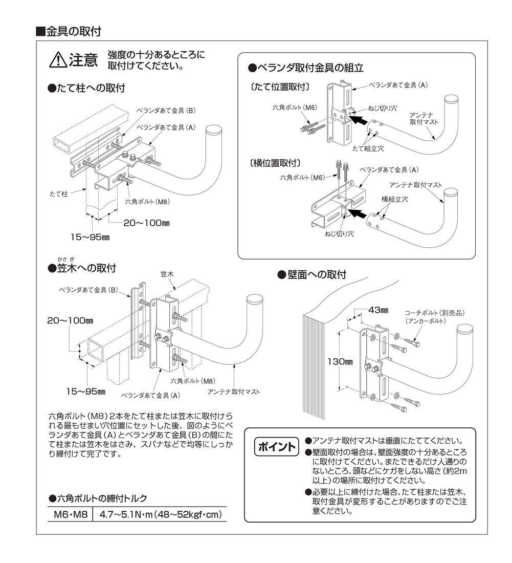【用途】アンテナ取付金具です。(家庭用45cm型衛星アンテナ、薄型UHFアンテナ向け)特に薄型アンテナのベランダ設置に最適です。
