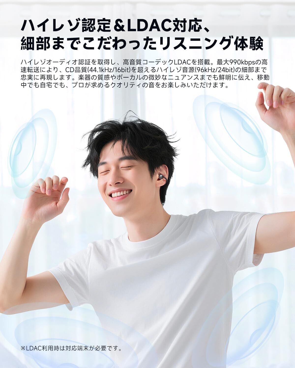 【最大40時間の長時間再生&物理ボタン操作】一回の充電で最大10時間(LDACオフ時)の連続再生が可能。充電ケースを使用すれば、驚きの40時間再生が実現します。週末の小旅行や出張でも充電器を持ち歩く必要がなく、音楽やポッドキャストを存分にお楽しみいただけます。タッチ式ではなく物理ボタンを採用したことで、誤操作を減らし、音量調整や再生停止などの操作を確実に行うことができ、どんなシーンでも簡単にコントロールできます。