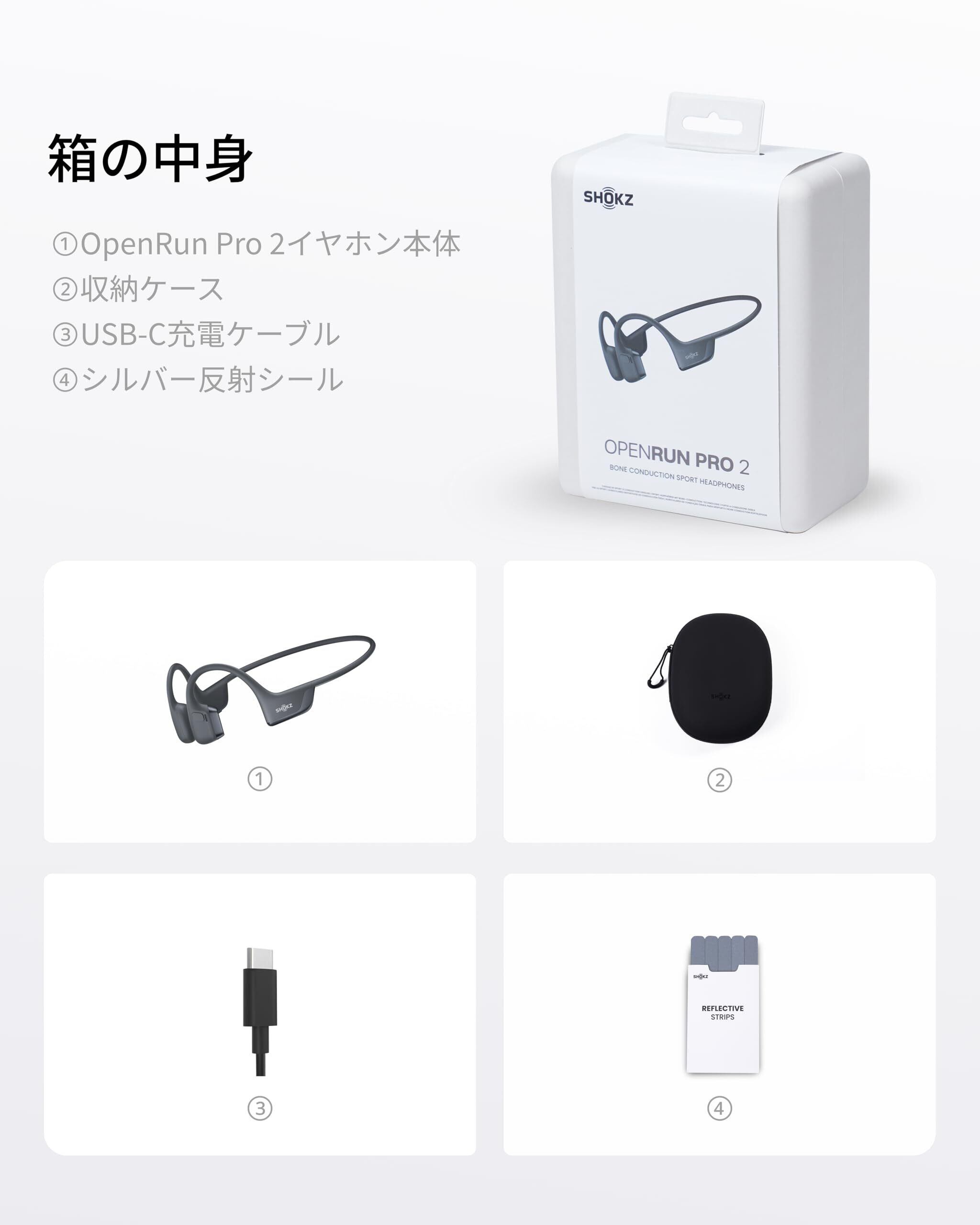 Shokz (ショックス) OpenRun Pro 2 骨伝導イヤホン ワイヤレス bluetooth5.3 オープンイヤーヘッドホン 耳を塞がない 自動ペアリングヘッドフォン マイク付き 技適認証済み ランニング・スポーツイヤフォン P55防水 急速充電 12時間再生 USB-C充電 ブラック