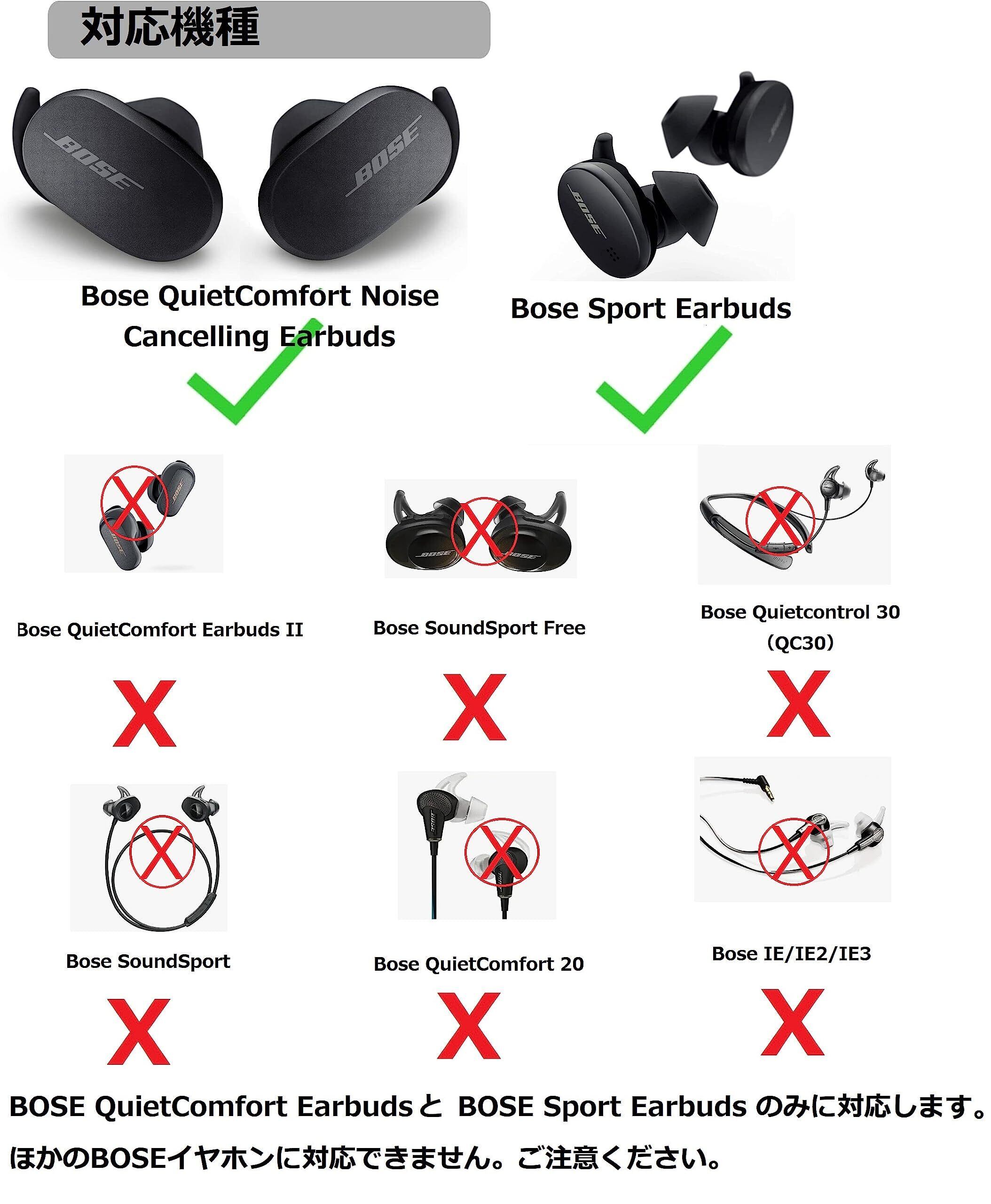 【対応機種】Bose Sport Earbudsに適合します。Bose QuietComfort Earbudsに適合します。【QuietComfort Earbuds II X 対応しない 】等ほかのバージョンのイヤホンに対応できません、ご注意ください。