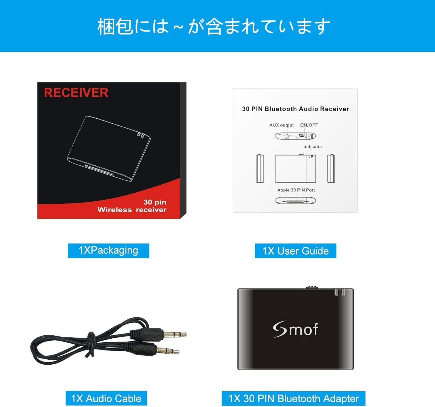 【あなたの古いBOSEを活用】Smof30ピンブルートゥースアダプター(AUX搭載)を使用して、 iPhone/Android からの音楽をオリジナルのBOSEサウンドドックと他の30ピン音楽ドックに輸送します。プロなBOSEブルートゥースアダプターの代替品です。