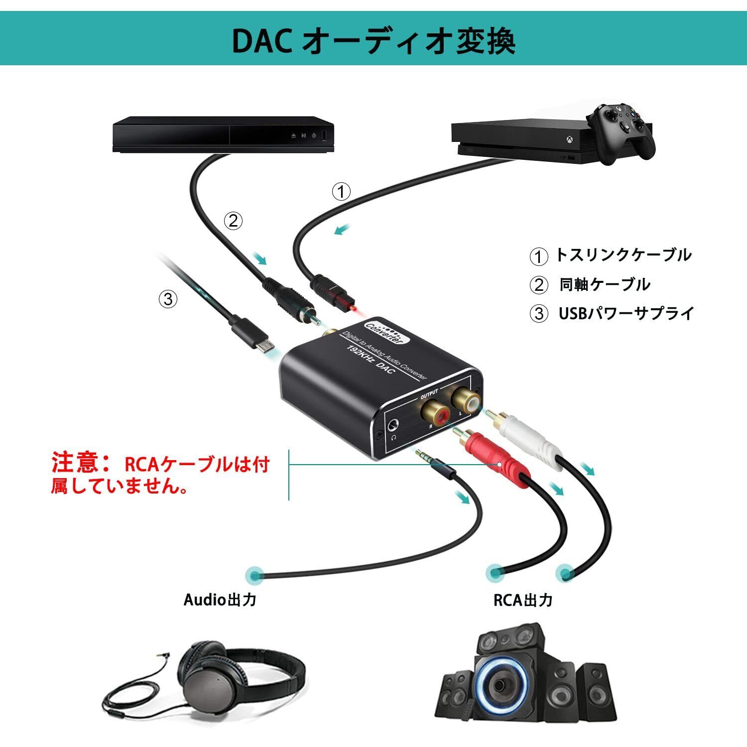 DAC デジタル(光&同軸)→アナログ(RCA) 高性能 192kHz 光デジタル アナログ オーディオ変換器 3.5mmミニジャック出力 アルミ合金製外殼 金メッキ端子 DAC オーディオ変換器 PS4 XBox HD DVDなど対応 同軸ケーブル/光ケーブル/USB電源ケーブル/日本語取扱説明書付き