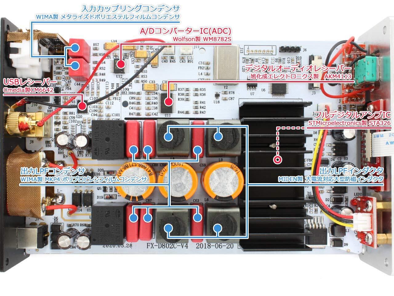 FX-AUDIO- D802J++ デジタル3系統24bit/192kHz対応+アナログ1系統入力 STA326搭載 フルデジタルアンプ USB 光 オプティカル 同軸 デジタル (ブラック)