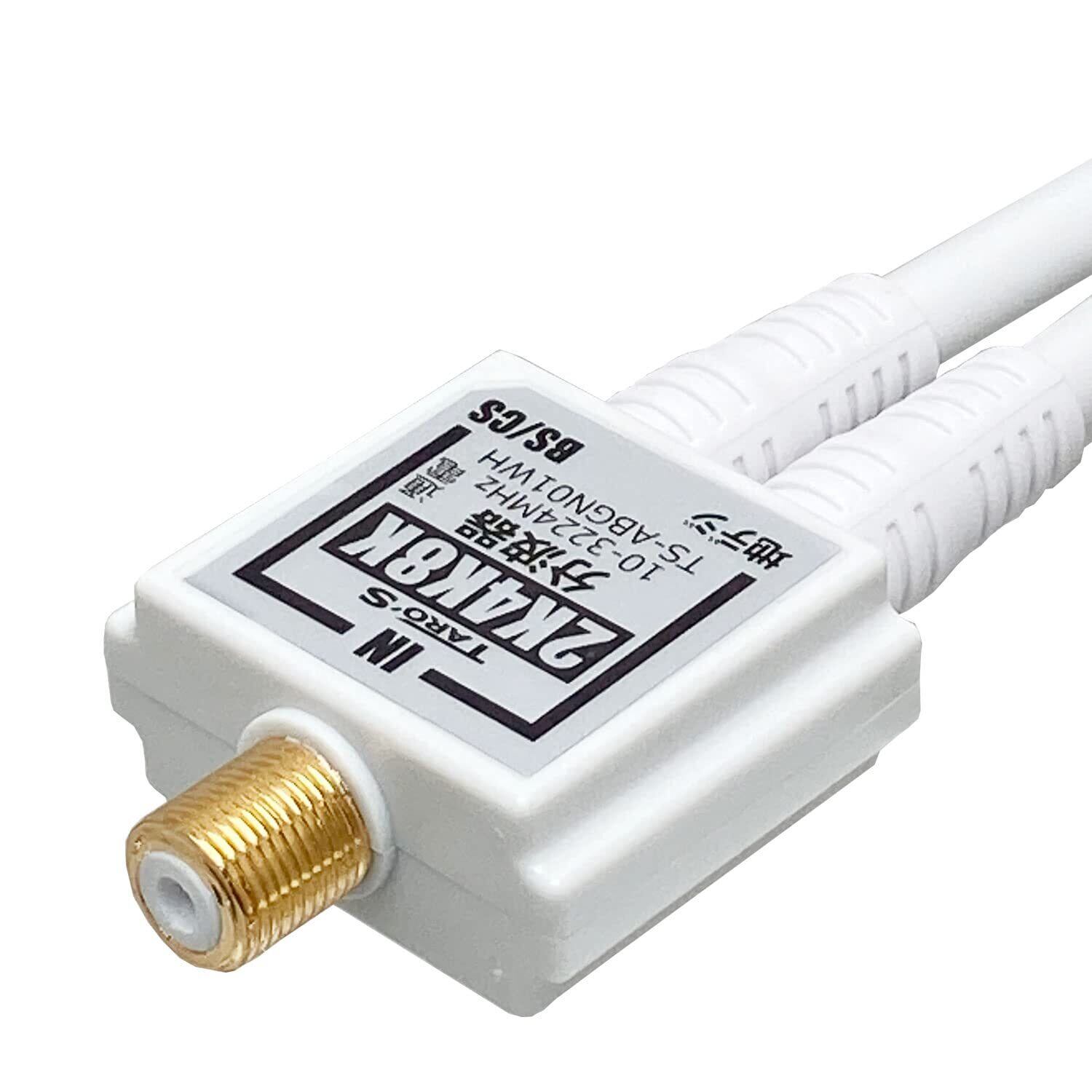 TARO'S アンテナ分波器 4K8K放送(3224MHz)/BS/CS/地デジ/CATV 対応 ホワイト 金メッキ 4CFBケーブル 2本付き 一体型 15cm 小型ボディ タローズ TS-ABGN01WH