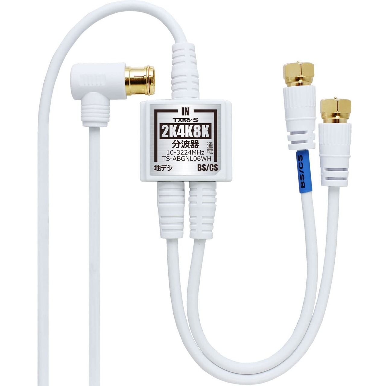 TARO'S アンテナ分波器 入力/出力一体型ケーブル付き 4K8K放送(3224MHz)/BS/CS/地デジ/CATV 対応 2.5C-FBケーブル 5M + 20cm*2 金メッキ ホワイト 小型ボディ タローズ TS-ABGNL06WH