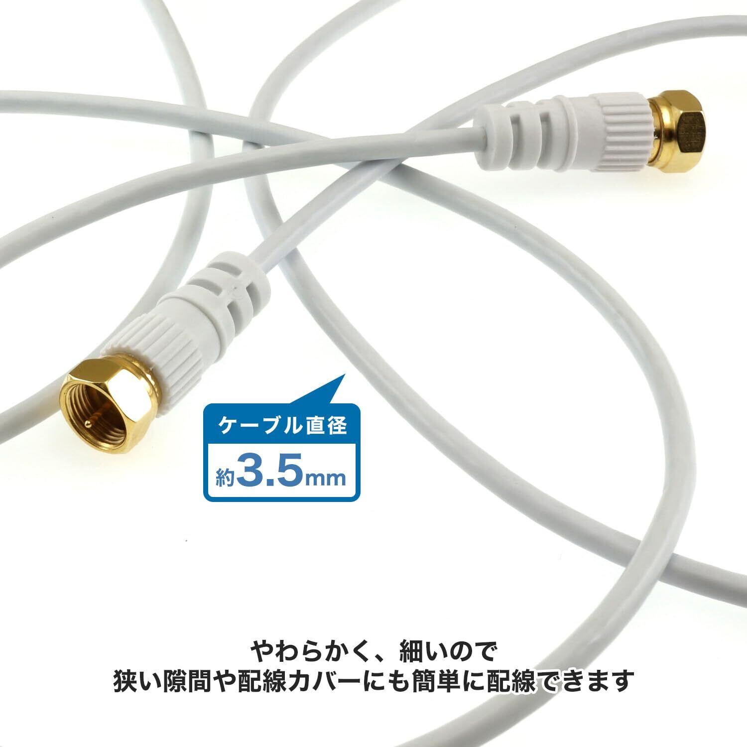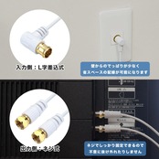【入力側ケーブル仕様】 ●ケーブル規格:S-2.5C-FB ●コネクタ規格:F型 ●コネクタ形状:L字差込式(金メッキ仕様) ●コネクタサイズ:W約14.8 x H約14.4 x D約30.2 mm ●インピーダンス:75Ω ●ケーブル直径:約3.5mm ●ケーブル長:1.5m