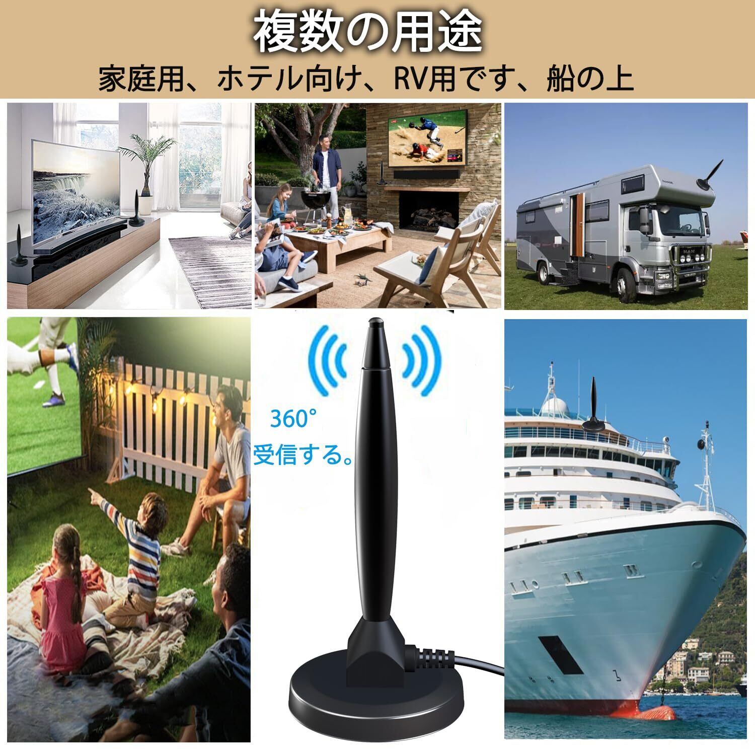 室内アンテナ ポータブル 4K対応 HD TVアンテナ 120KM受信範囲 地デジアンテナ UHF VHF対応 設置が簡単 USB式 磁力固定 タイプ内蔵高性能信号アンプ 全種類テレビ対応 5m同軸ケーブル
