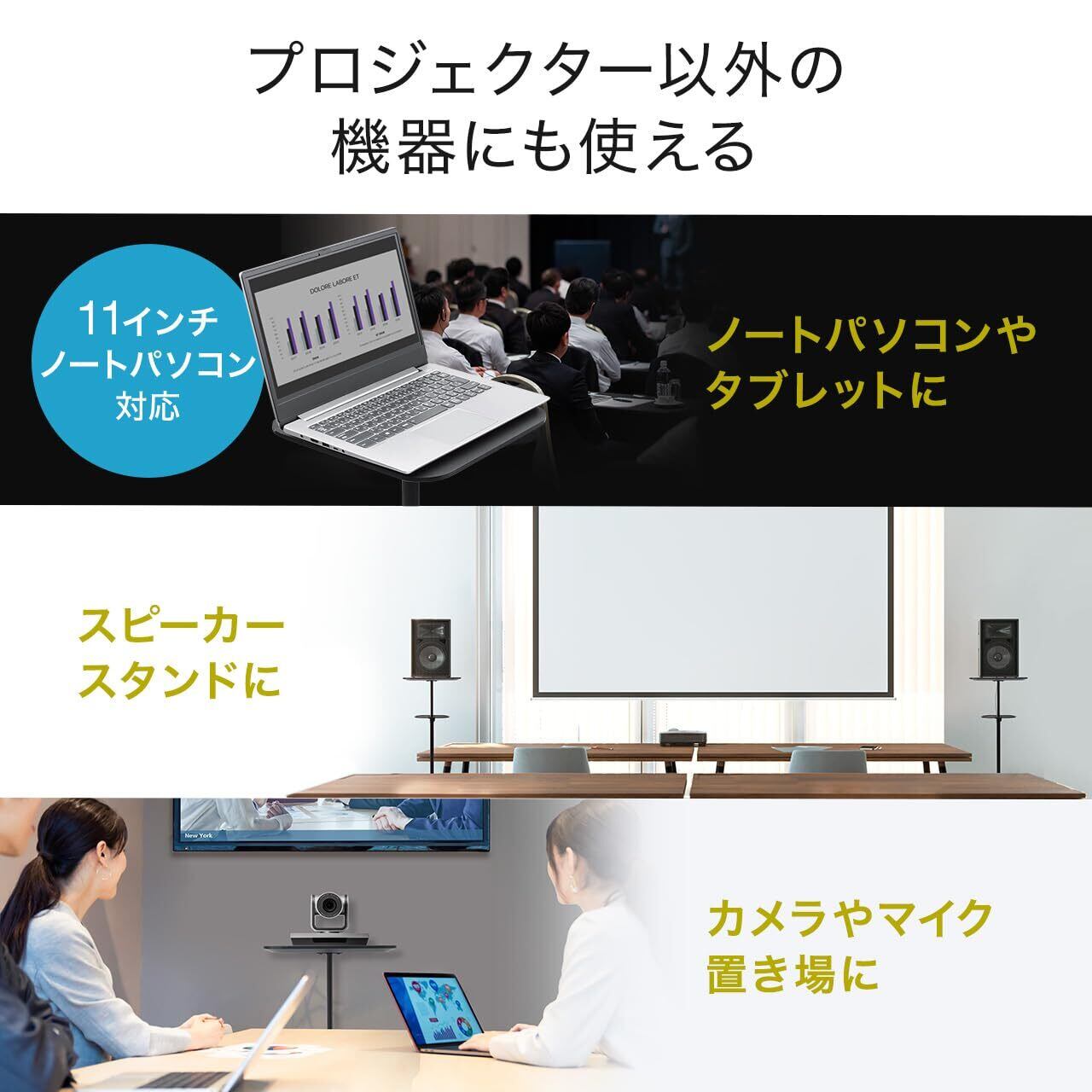 天板には プロジェクター 、ビデオカメラなどを設置できる30cm×30cmの天板サイズとなっています。
