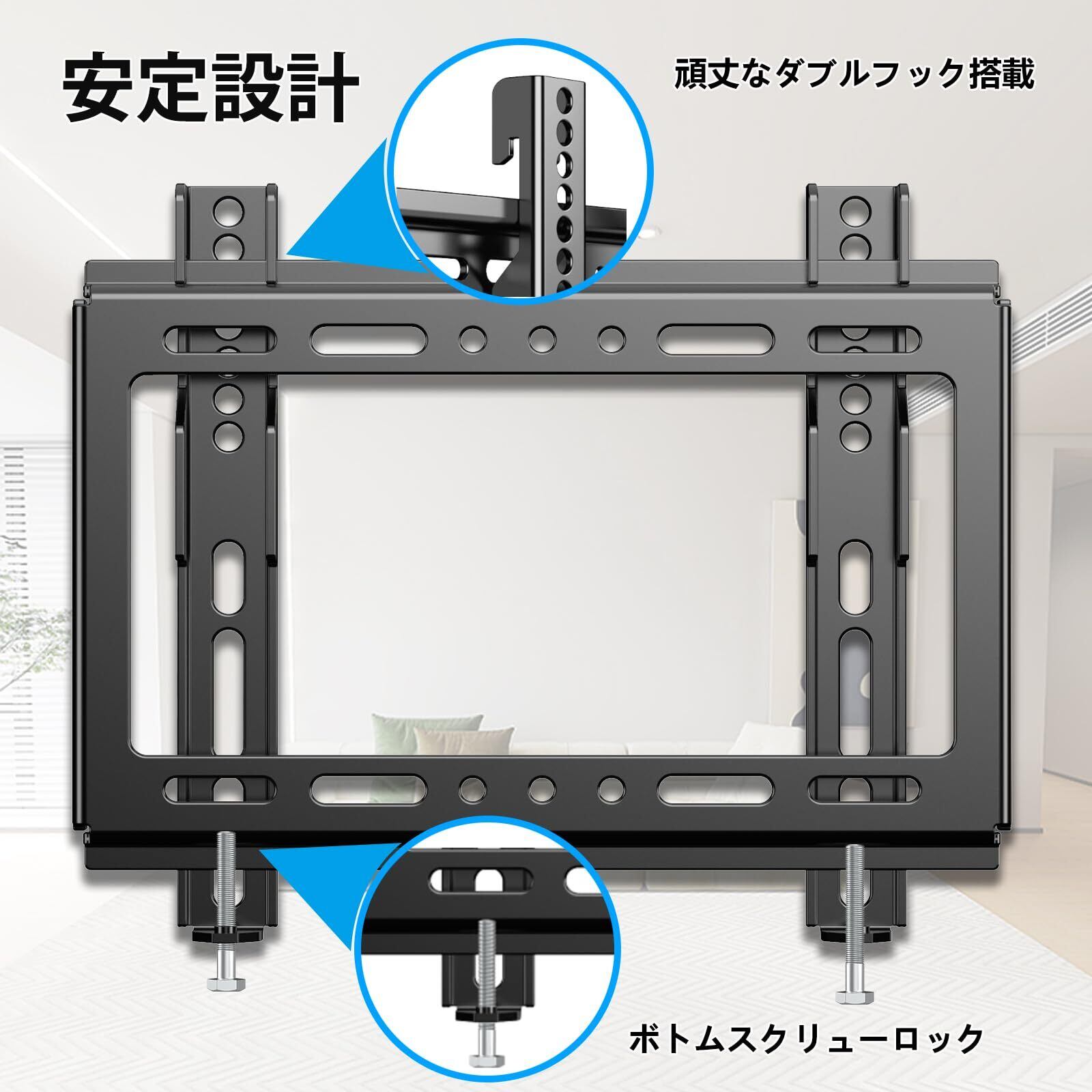 【/壁掛け用テレビ金具】本金具は冷間圧延鋼素材の一体型作りで丈夫で使用寿命が長いです,変形ありません。表面はピアノ塗装したので、滑り止め、錆もつきません。最大耐荷重は25kgで、テレビが倒れる心配がなく安心です。耐震性もあります。