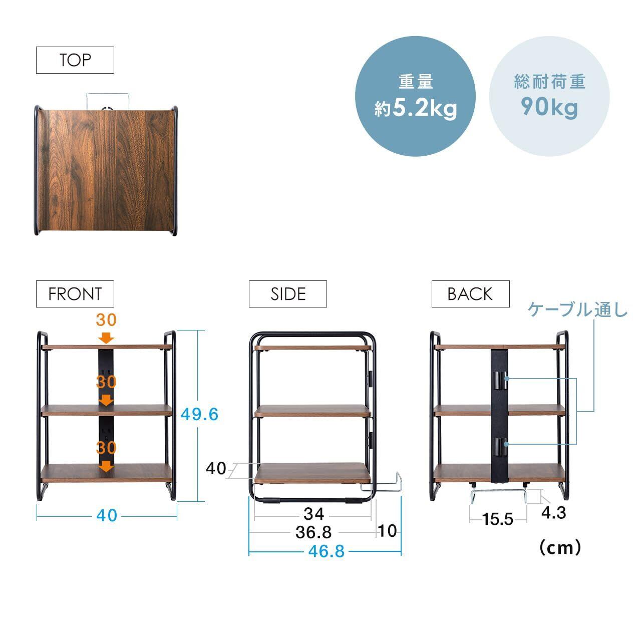 サンワダイレクト オーディオラック オープンシェルフ 3段 木製 幅40cm 総耐荷重90㎏ タップ受け付 収納 ラック ゲームラック AVラック ブラウン 100-PL033M