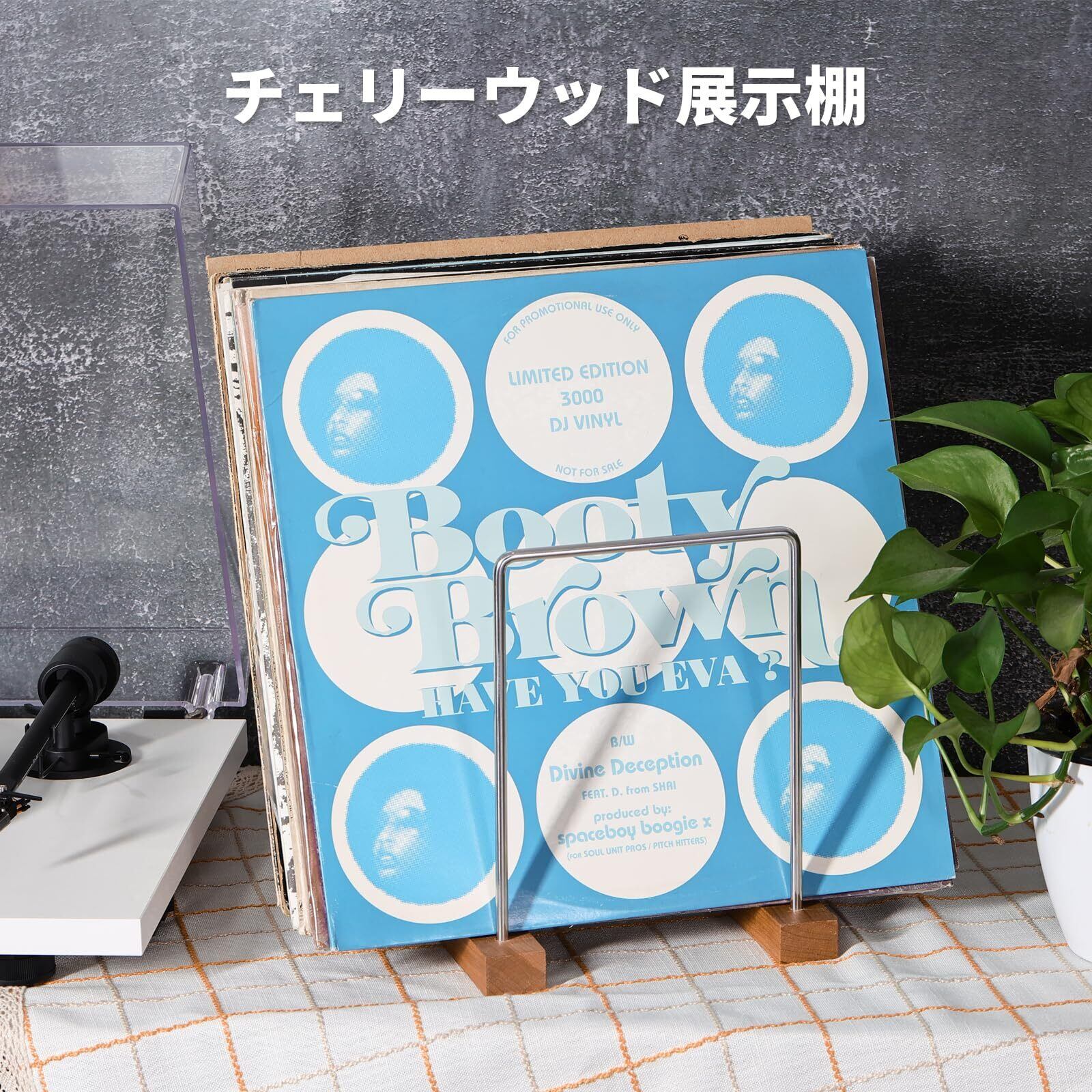 LPレコード収納棚 チェリーウッド展示棚 EP 雑誌卓上収納棚 ステンレス鋼 30-40枚LP収納可能 組み立て簡単