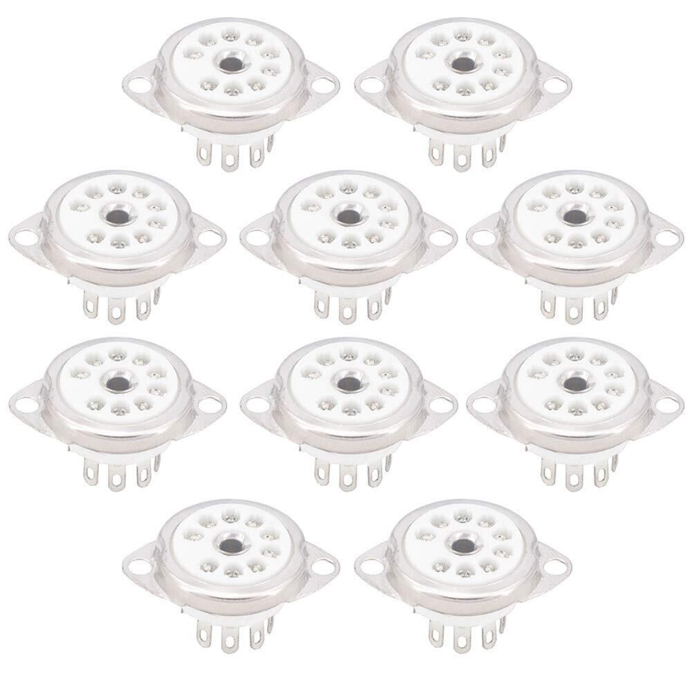 Aqevn 10個 セラミックB9A シルバーメッキ 9ピン真空管ソケットパネルシャーシマウント ECC81 ECC82 ECC83 EL84 6922真空管用