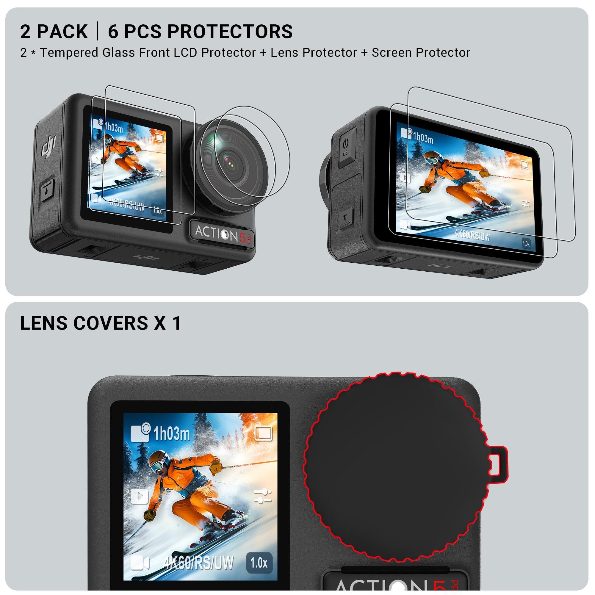 【対応機種】Dji Osmo Action 5 pro.【メイン画面用2枚+サブ画面用2枚+カメラレンズ用2枚+1枚レンズカバー】
