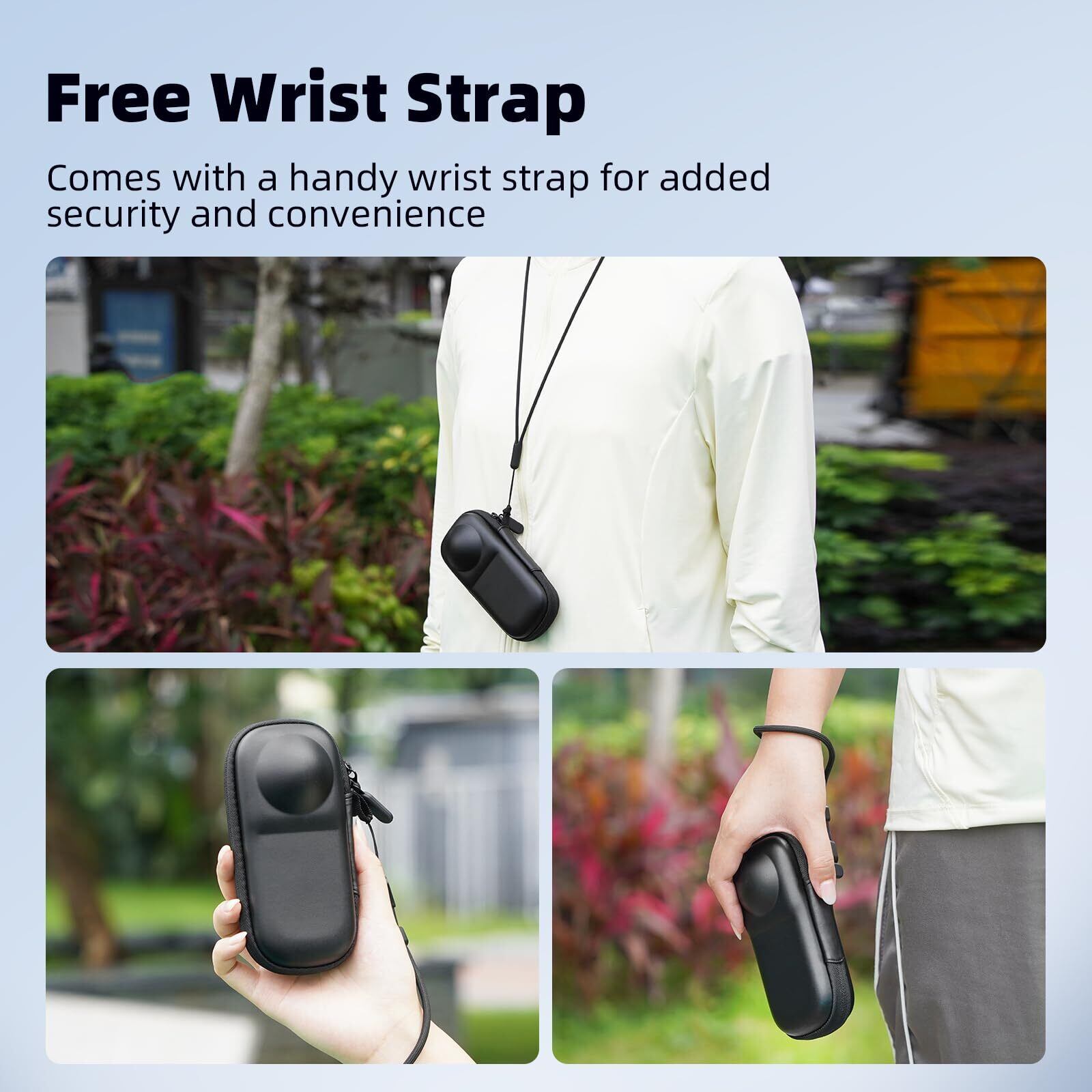 アップグレード版 - 衝撃吸収と耐衝撃性を備えたビロードの裏地が組み込まれているこのX5 X4収納バッグは、カメラのレンズと画面を包括的に保護します。 カラビナとリストストラップ付きで、バックパックや手首に簡単に取り付けることができ、旅行に便利です。