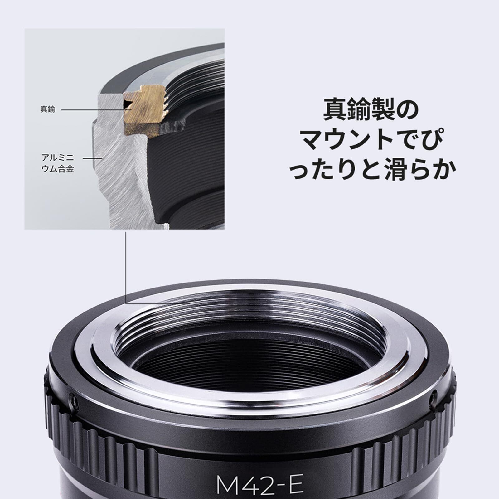 K&F Concept M42レンズ マウントアダプター ソニー対応 Eマウント NEX カメラ装着用 変換 レンズアダプターリング M42マウント Sony対応 eマウント M42-NEX マウント変換アダプター Alpha α6700 α7CII ZV-E10 NEX-7 NEX-6 NEX-5N NEX-5 NEX-C3 NEX-3専用 高精度 無限遠実現 メーカー直営店
