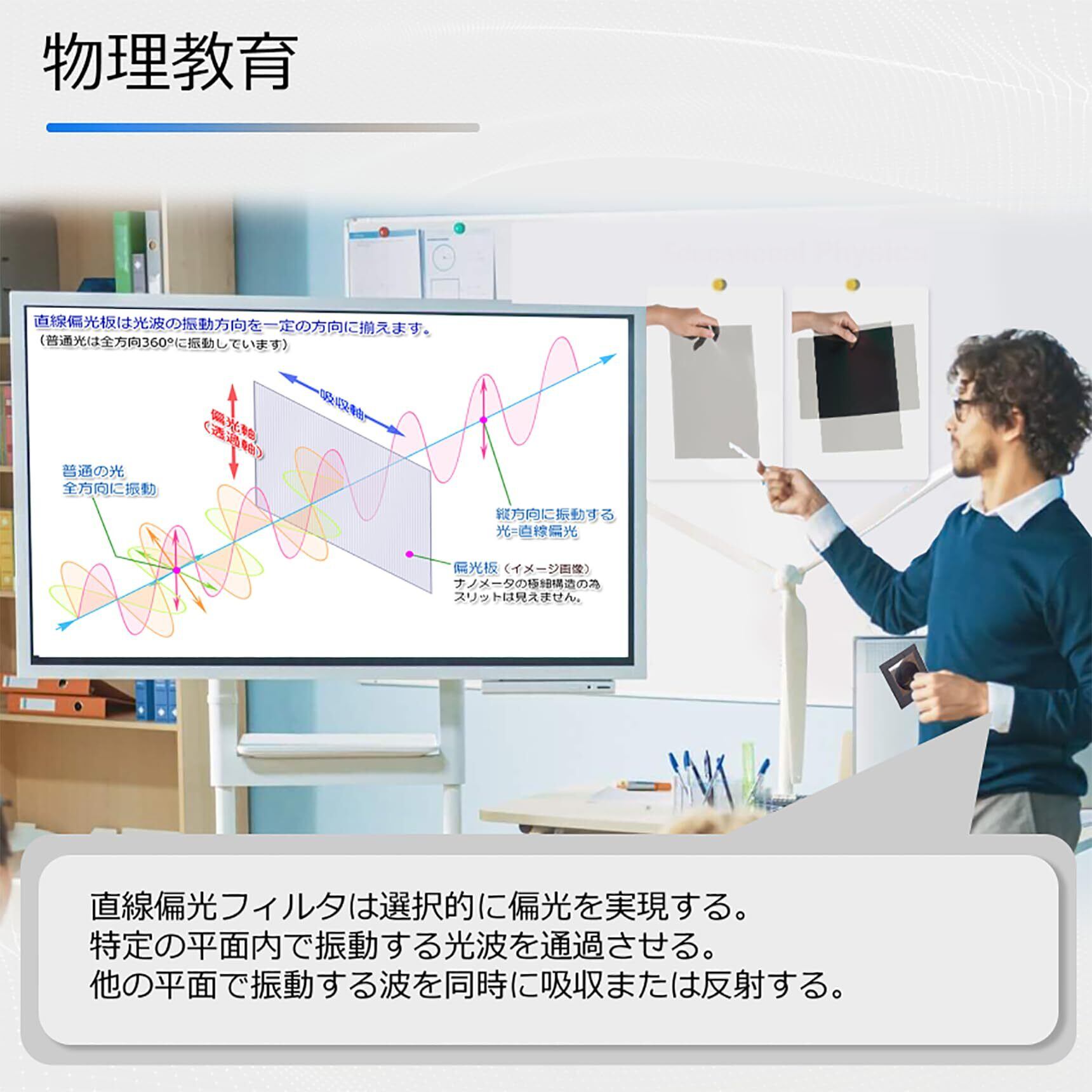 【線形偏光器】偏光フィルムは、特定の偏光の光波が他の光を通過し、遮断することを可能にする光学フィルムです。写真業界、各種液晶ディスプレイ、科学プロジェクト、物理学用に広く応用されています。