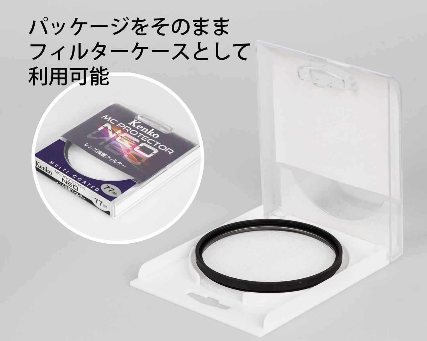 ケンコーのレンズ保護フィルターとして、ベーシックなラインナップ「MCプロテクター」のコーティングを改良。デジタルカメラの撮像素子に最適化されたチューニングとしました。MCプロテクターNEOは、レンズに普段からつけておくことで、屋外撮影での砂ぼこりやゴミなどから大切なレンズにキズがつかないよう保護します。自然な色再現を実現した、高透過率の両面マルチコートフィルターです。常用フィルターとして最適です。また、常時装着しておくことで、清掃時もレンズそのままではなく、フィルターを拭くこととなりますので、カメラレンズそのものの拭き傷防止にも役立ちます。