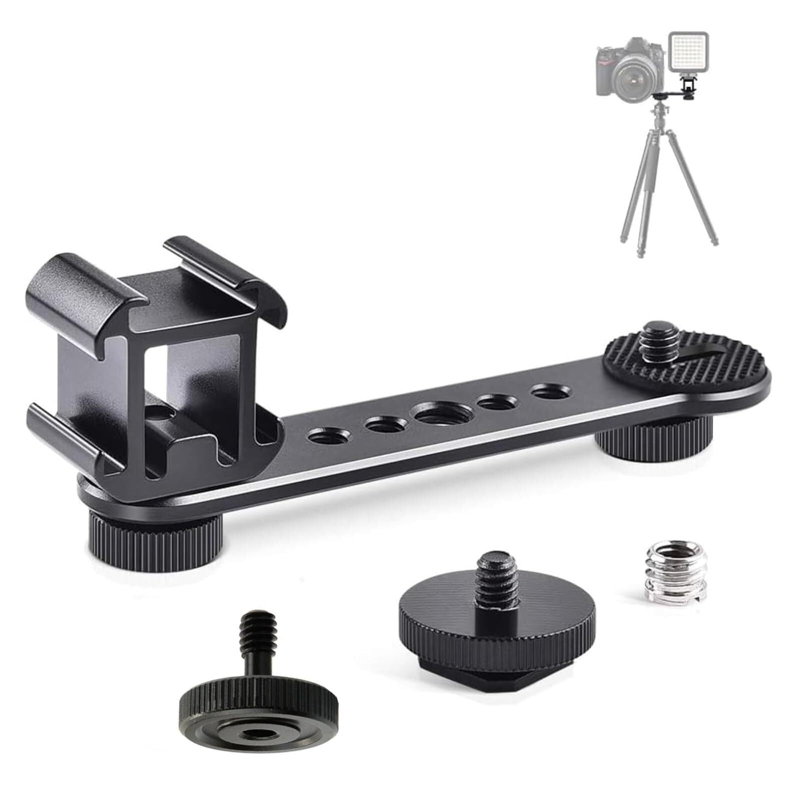 【パッケージの内容】6mm ホットシューアダプターヘッド*1、4.5mm ホットシューアダプターヘッド*1、拡張ブラケット*1、1/4-3/8変換ネジアダプター。 【頑丈なアルミ素材&ご注意】アルミニウム合金製、耐久性に優れ、丈夫で軽く持ち運びできる拡張ブラケットです。※ご注意:万が一製品の使用や品質には何か問題がございましたら、アフターサービスが迅速に対応いたします。ぜひお気軽くにご連絡ください。