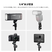 【1/4インチネジ仕様】:上部は1/4ネジ仕様のコネクター付き、下部は16mmオスダボ仕様のライトスタンドに装着可能です。