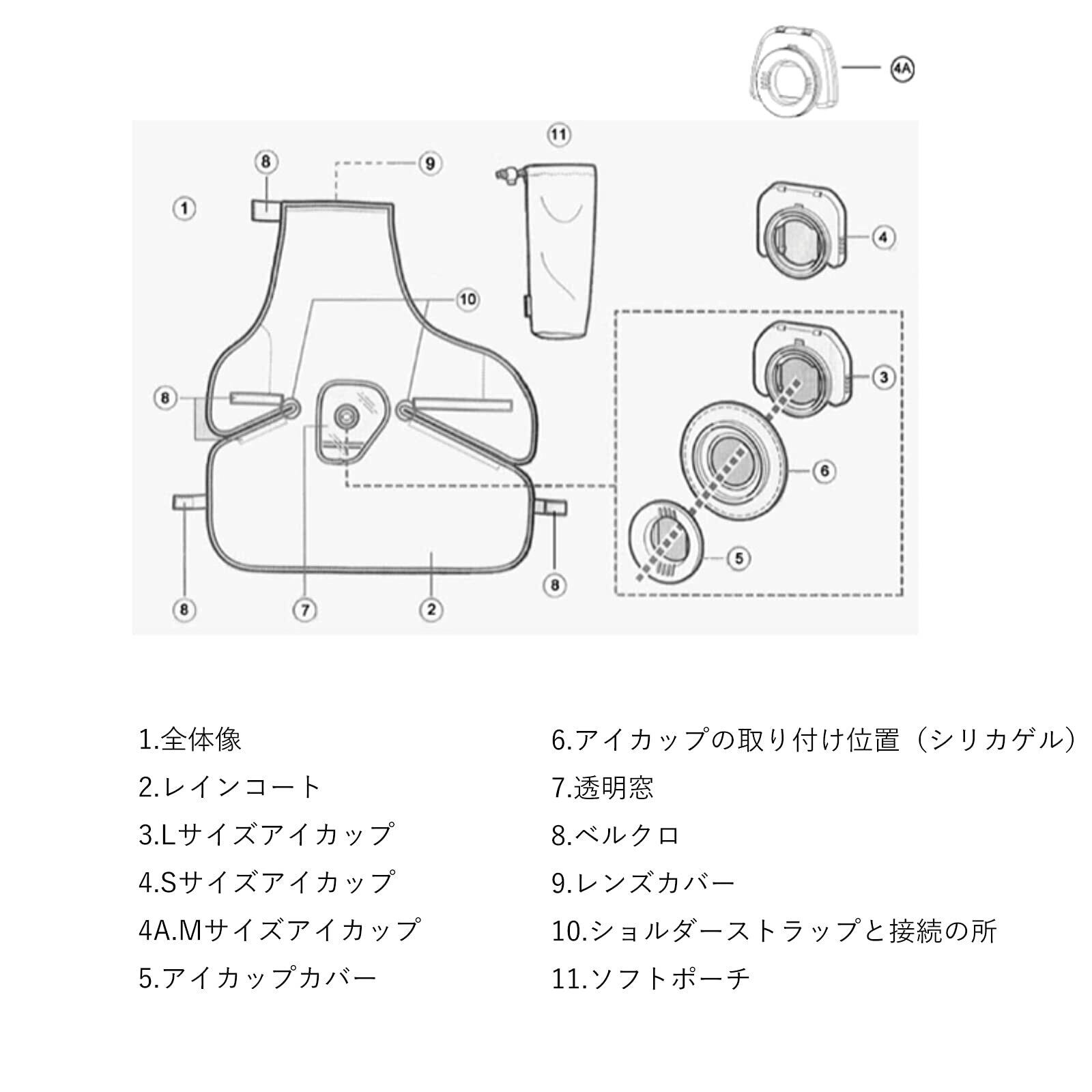 【接眼レンズ固定方式】接眼レンズ固定方式により、レインコート、特に透明な窓部分をカメラにしっかりと固定できます。
