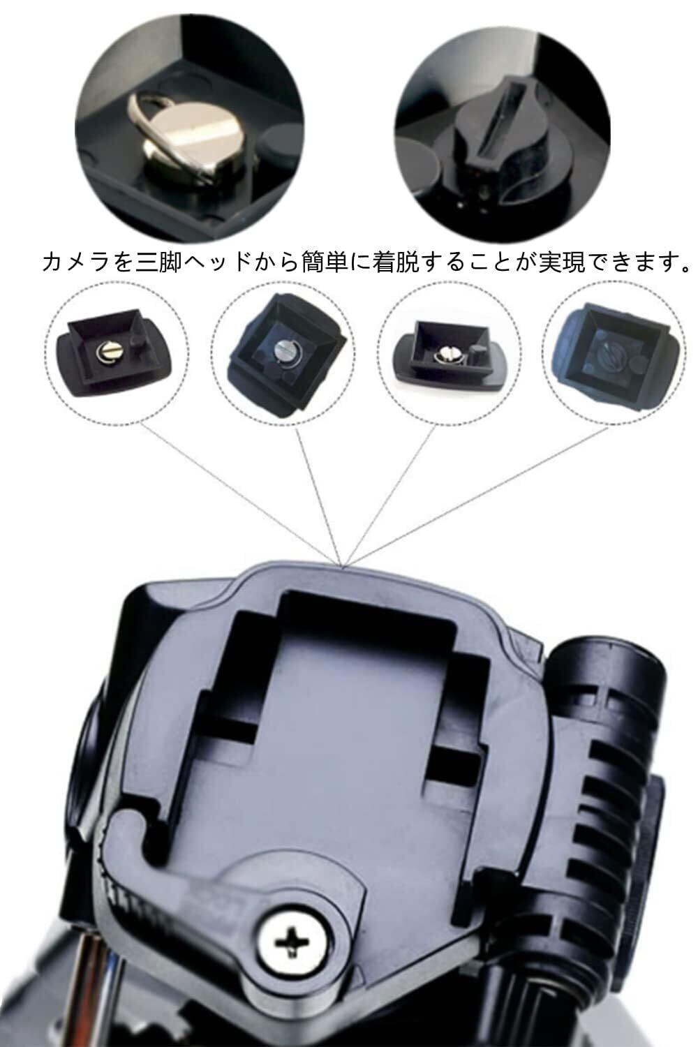 装着簡単 : 小さなクイックリリースプレートは、押すだけで複数のカメラは同一の機器に素早く切り替えられます。カメラを三脚ヘッドから簡単に着脱することが実現できます。