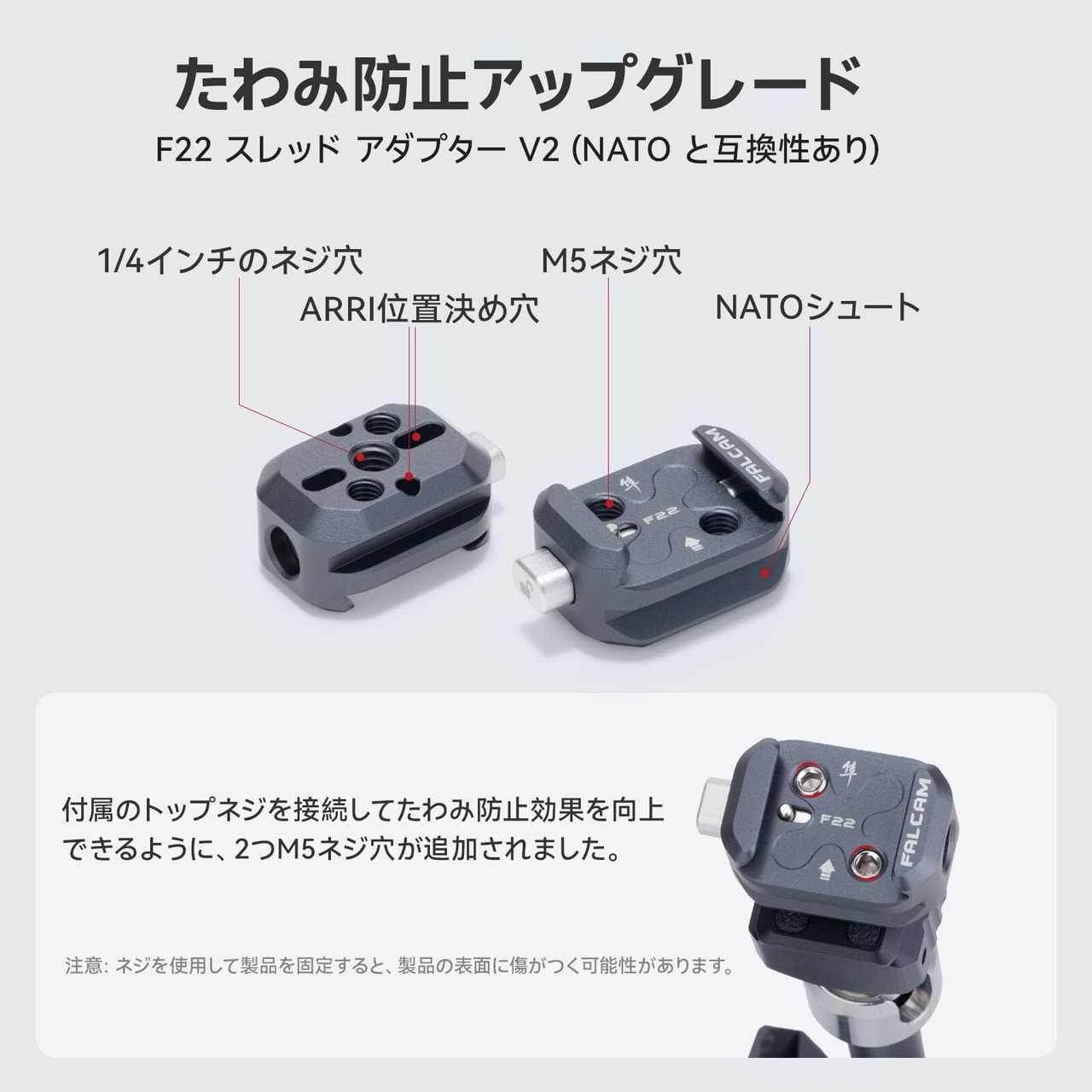 【回転ズレ防止】x4専用F22シリーズのクイックリリースキットに設計された滑り止め位置決めプレート。新しい緩みを最大限に抑える位置決めポストを装備し、より安定したカメラ搭載が可能になりました。固定ネジのスライド溝が切削されていてスムーズに動き、ネジが緩んで落ち込み防止ワッシャーあります。