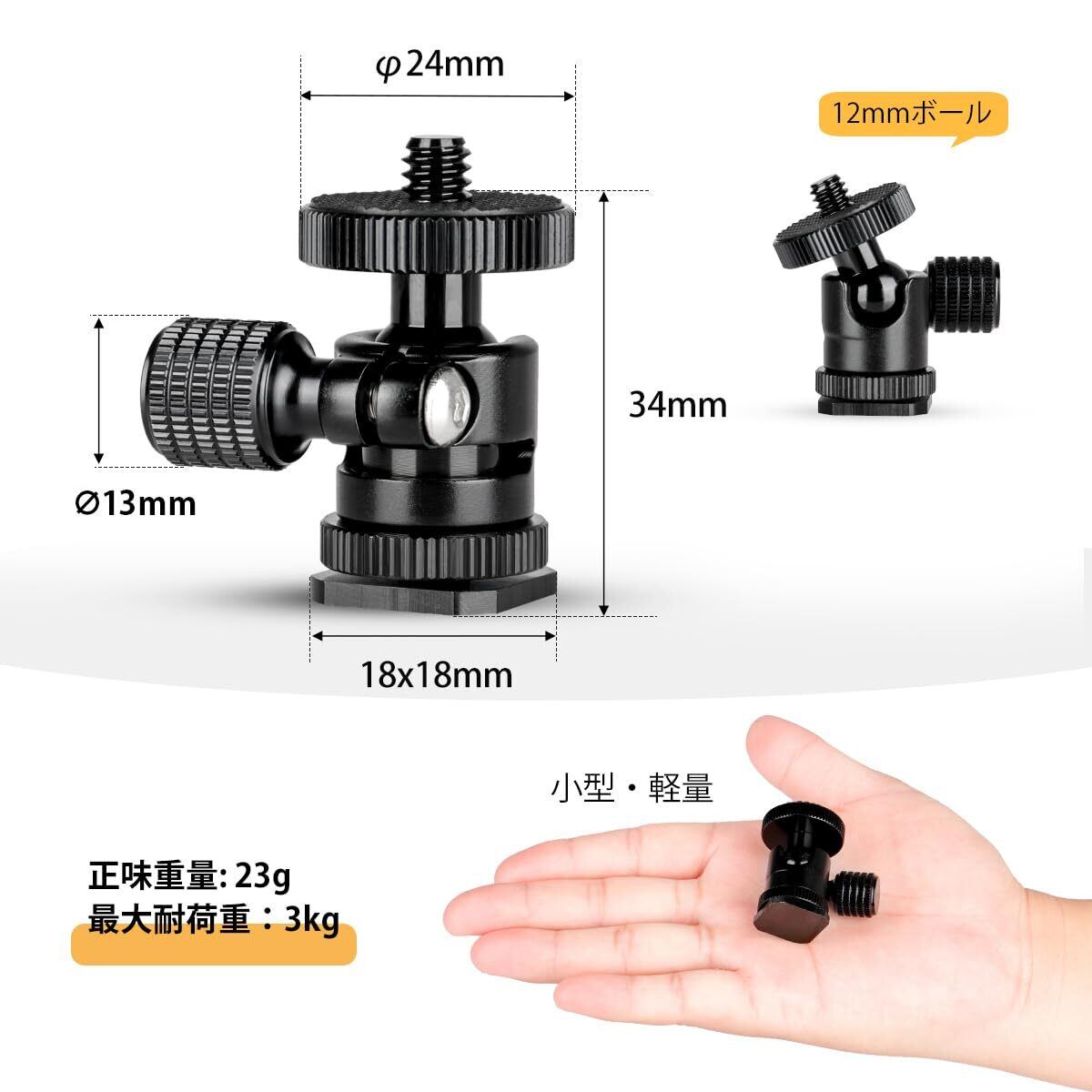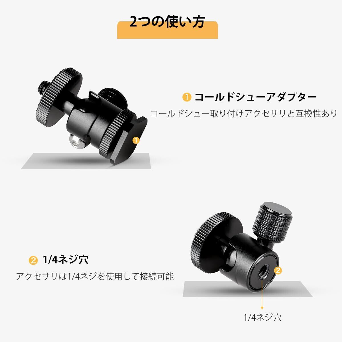 koolehaoda 1/4ミニボール雲台とシューマウントアダプターは、カメラビデオライト三脚一脚に適しています(1/4雲台)