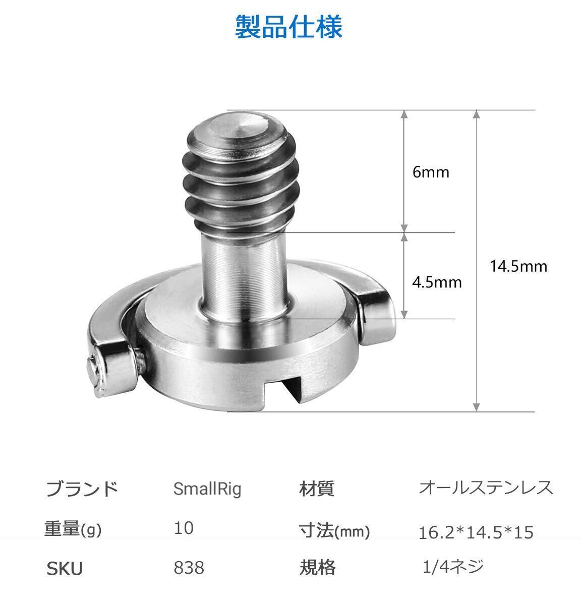 SMALLRIG 1/4インチネジ カメラ固定ネジ 2個セット 1/4インチノブ 1/4"-20スレッド カメラ止めネジ クイックリリースカメラ固定ネジ カメラ止めネジ-838 [並行輸入品]