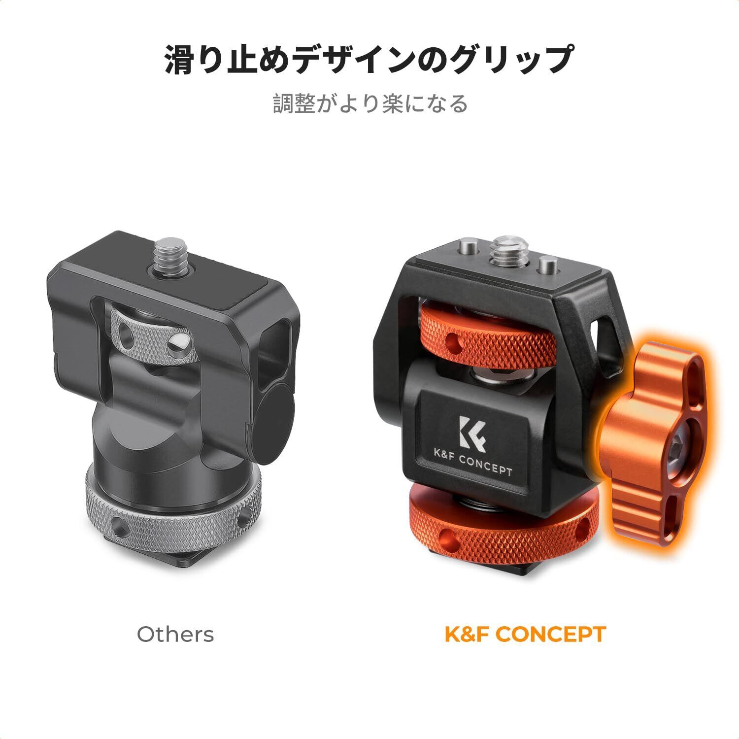 K&F Concept モニターマウント コールドシュー対応(位置決めるピントあり・1/4ネジ付き・スマホやアクションカメラをカメラの外部モニターに)多角度調整可能 モニター用クイックリリーススタンド 軽量79g 冷靴マウントアダプター カメラアクセサリー 防滑設計 3kg耐荷重 頑丈アルミ製
