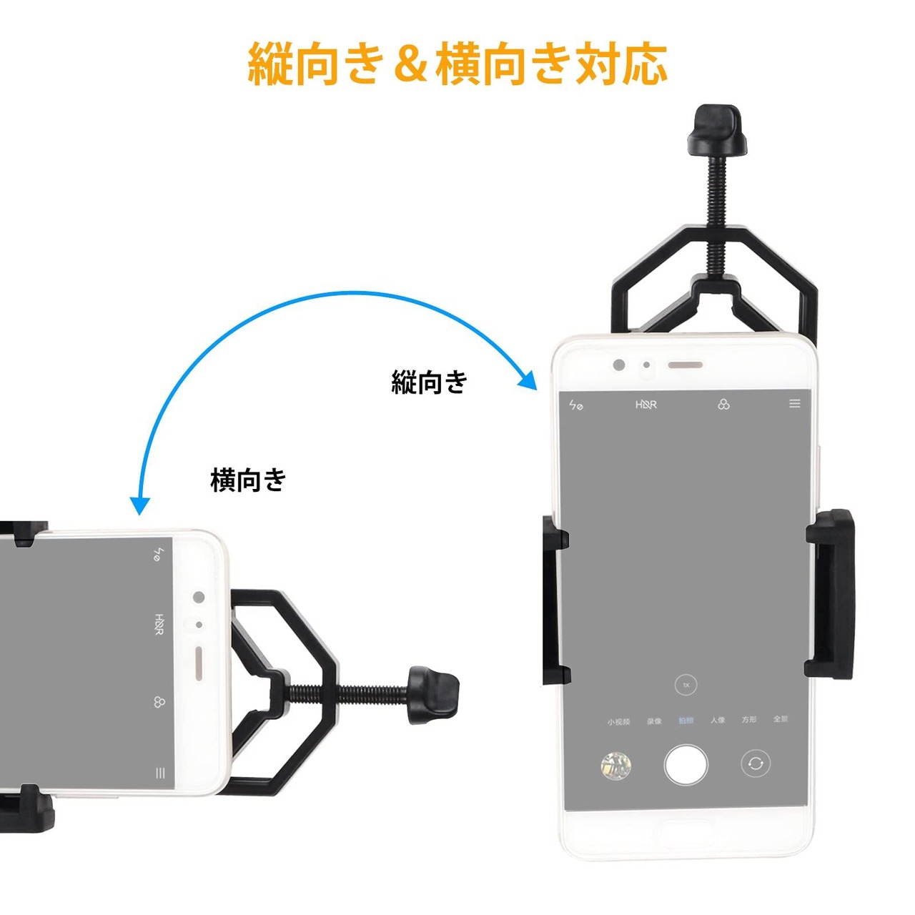 素材: 強度が高く、靭性が強く、軽量なABS材料で作られていたクランプの表面には柔らかい滑り止めゴムパッドが付き、表面を傷つけずに接眼レンズを固定することができます。アダプターでスマートフォンを接眼レンズに固定したら、すばらしい写真を撮り始めることができます。