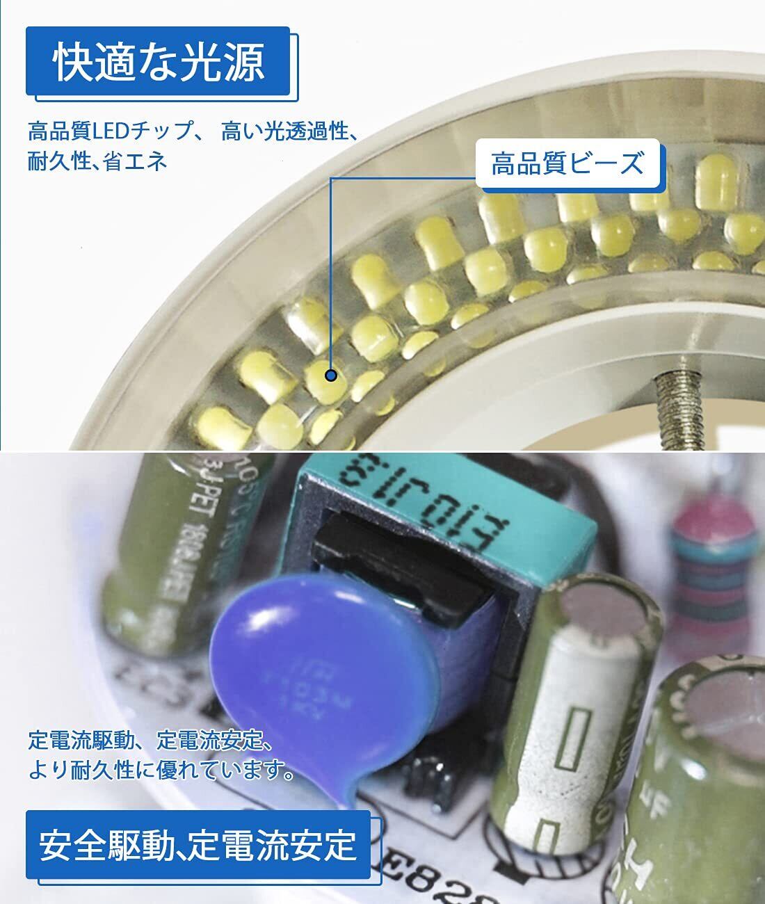 Shengshou LEDリング照明ライト 実体顕微鏡用LED照明装置 144 LEDビーズ 光源輝度調整可能 実体顕微鏡用二重巻き 顕微鏡カメラ レンズの直径30mm-63mm用 (ライト)