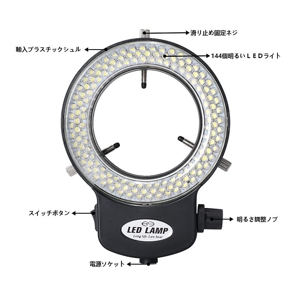 HAYEA LEDリングライト 実体顕微鏡用LED照明ライト LED照明装置 144LEDビーズ光源輝度調整でき 顕微鏡カメラのレンズ直径30MM-60MM用電源アタプタ付き