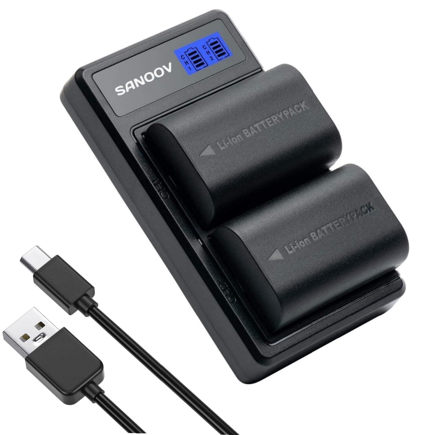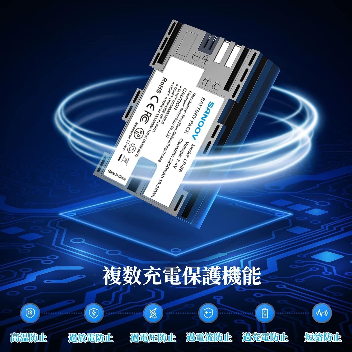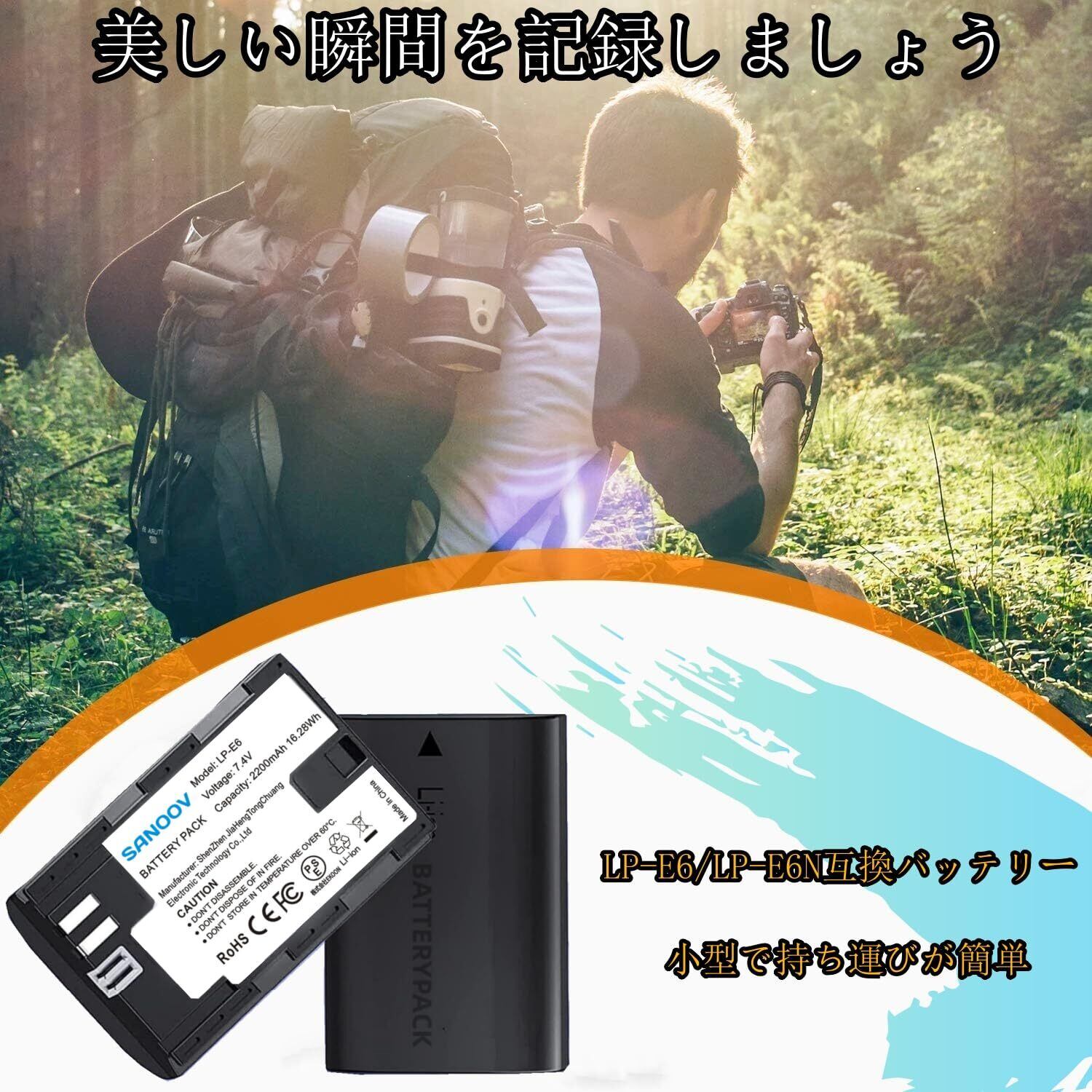 SANOOV LP-E6/LP-E6N互換バッテリー 2*2200mAh大容量バッテリー USB-C同時充電 LCD充電器セットFor Canon EOS 80D/60D/60Da/70D/R7/R6/R5/R5 II,EOS 5D MarkII/MarkIII/Mark IV/5DS/6D Mark II,EOS 7D Mark IIなどカメラ