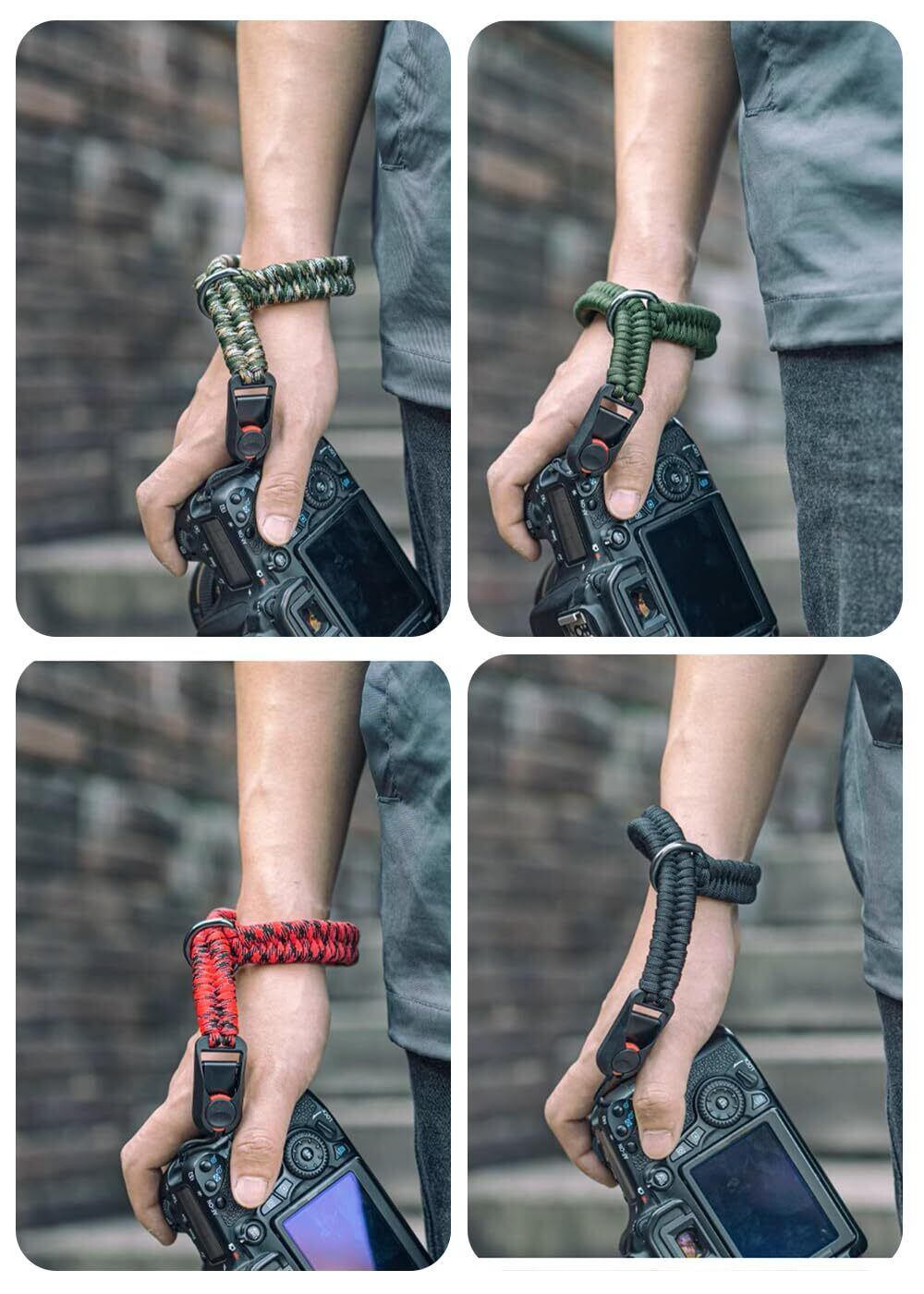 [ZXZone] カメラストラップ パラコード編みハンドストラップ、クイック着脱、付属のアダプタはほとんどの一眼レフカメラに使用でき、設置が便利。おしゃれ金属部品には高度な研磨処理が施されている (ブラック)
