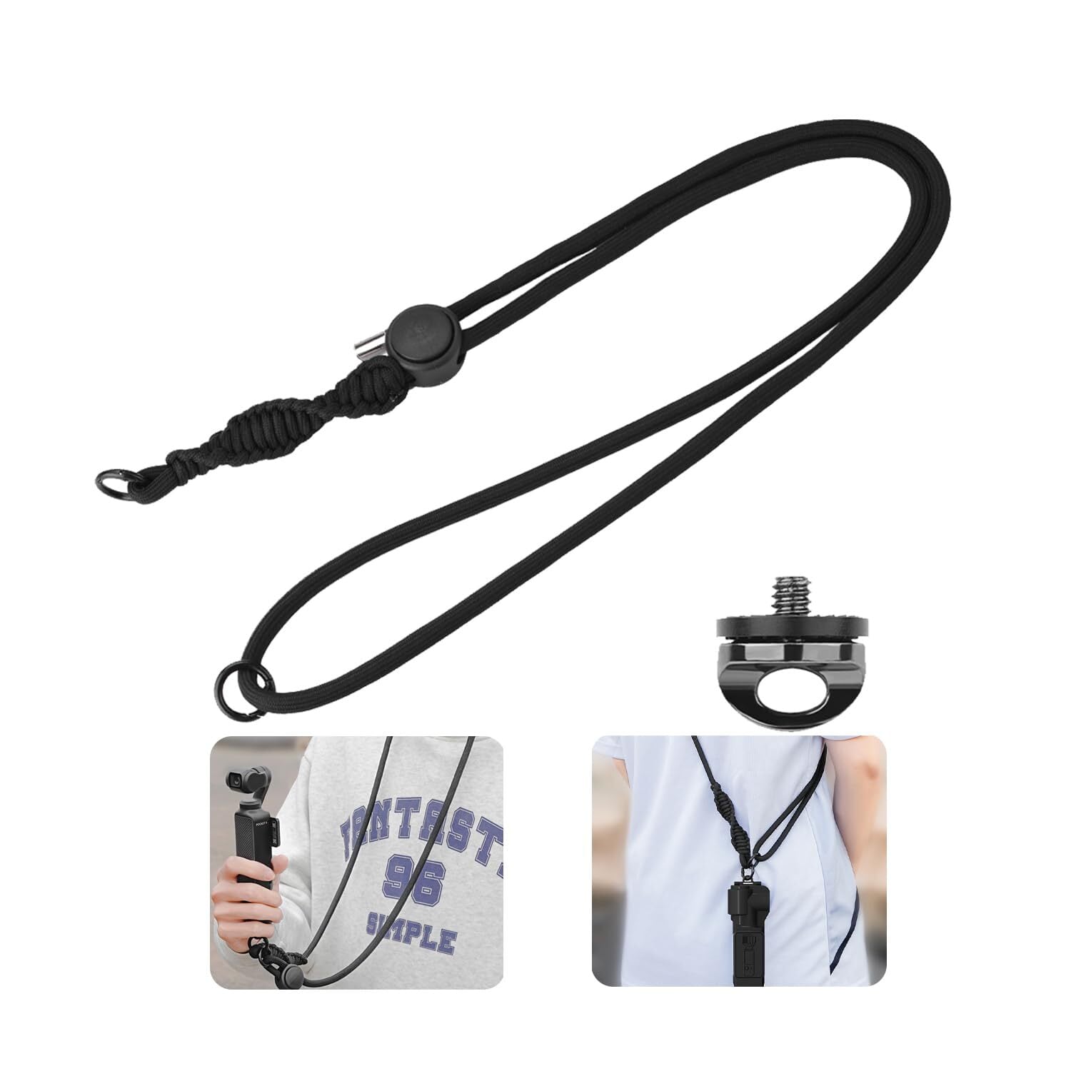 [Hohotoon] DJI Osmo Pocket 3 /Action 5pro/4/3/ INSTA360 X4 X3 X2/GO3 GO3S/Goproシリーズ/Ace Proシリーズ 対応 ストラップ ネックストラップ 、スポーツカメラストラップ 、71-123 CM 長さ 安全コード 紛失防止 (Black)