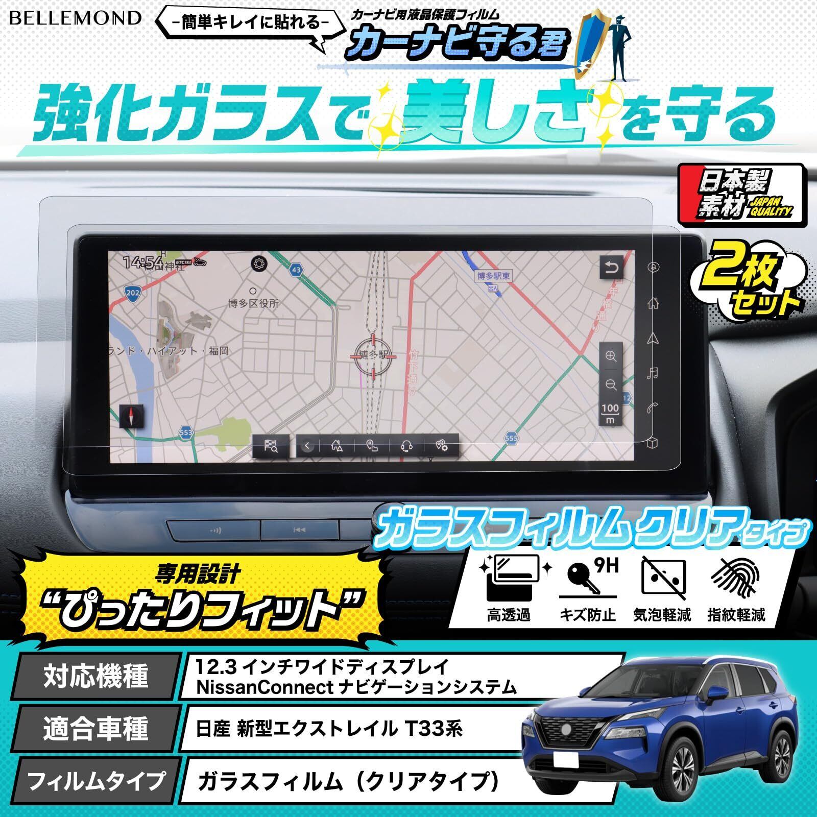 ベルモンド 日産 新型 エクストレイル T33 ナビ フィルム 12.3インチ NissanConnect ナビゲーションシステム 【 カーナビ守る君 】 透明 クリア 指紋防止 保護フィルム カーナビ ディスプレイ アクセサリー NISSAN X-TRAIL BELLEMOND B0831 2枚セット