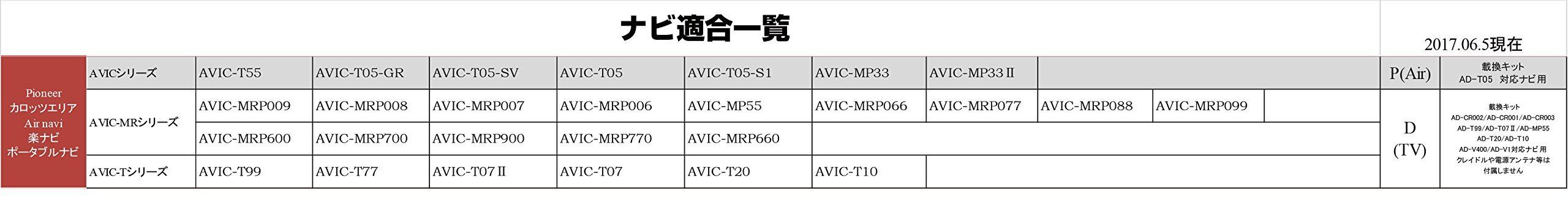 適合機種AVIC-MRP770 AVIC-MRP660 AVIC-MP55 AVIC-MRP006 AVIC-MRP007 AVIC-MRP008 AVIC-MRP009 AVIC-MRP066 AVIC-MRP077 AVIC-MRP088 AVIC-MRP099 AVIC-MRP600 AVIC-MRP700 AVIC-MRP900/AVIC-T99/AVIC-T77/AVIC-T07II/AVIC-T07/AVIC-T10/AVIC-T20対応※純正クレイドルは付属しません(適合は2015.10.15現在)最新の適合確認はナビ適合 http://www.an-y.com/REC-MOUNTS/navi.pdf