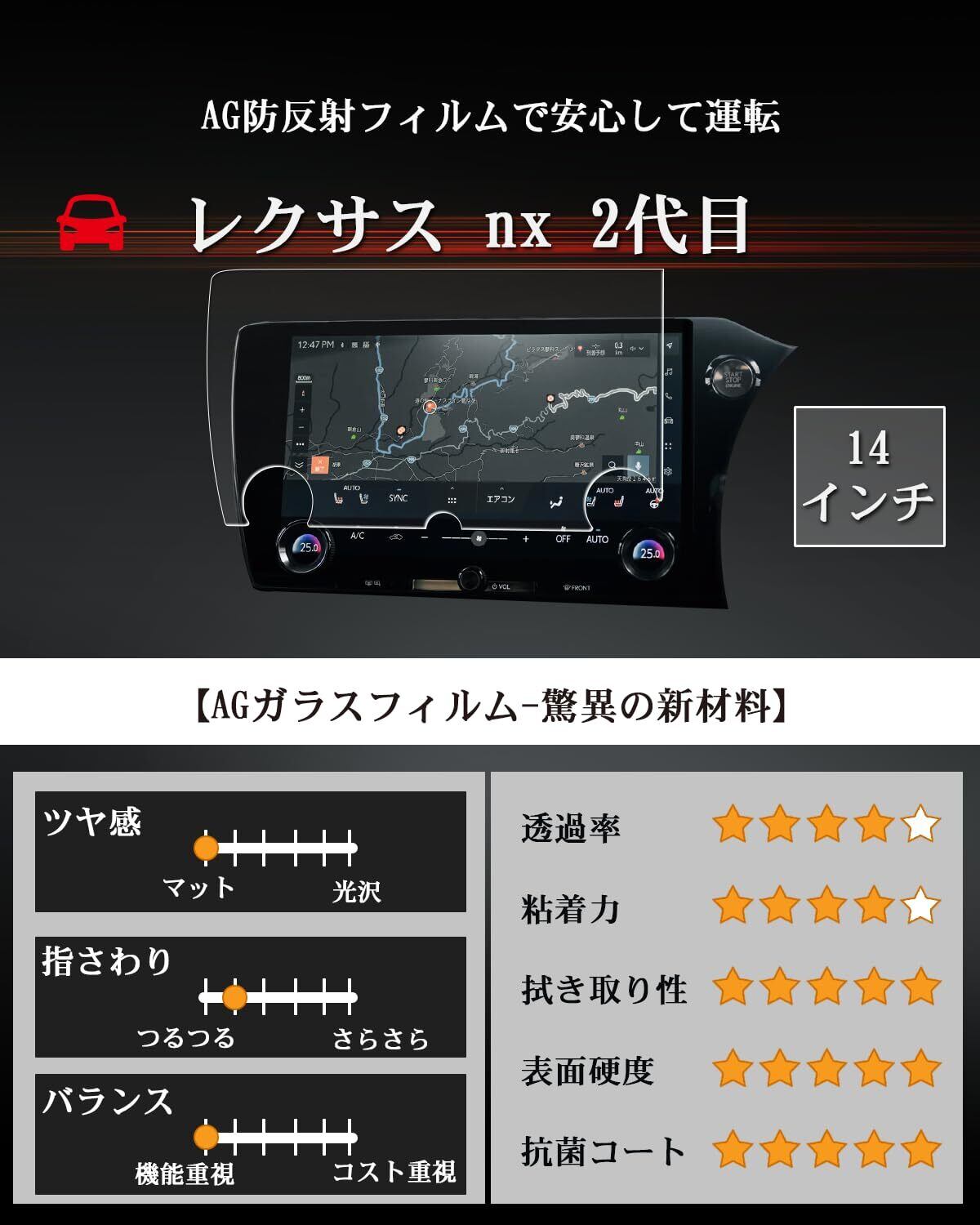 【AGガラスフィルム アンチグレア マット タイプ】ASZSK レクサスnx ナビ 保護フィルム 14インチ レクサスnx 20系 AG強化ガラス フィルム NX250 NX350 NX450H+ 専用 カーナビ アンチグレアフィルム 夜間運転 マット 指紋減少 非光沢 キズ防止 汚れ防止 9H 強化ガラス 貼付簡単 気泡ゼロ 防塵設計 自己吸着タイプ Lexus NX 適応