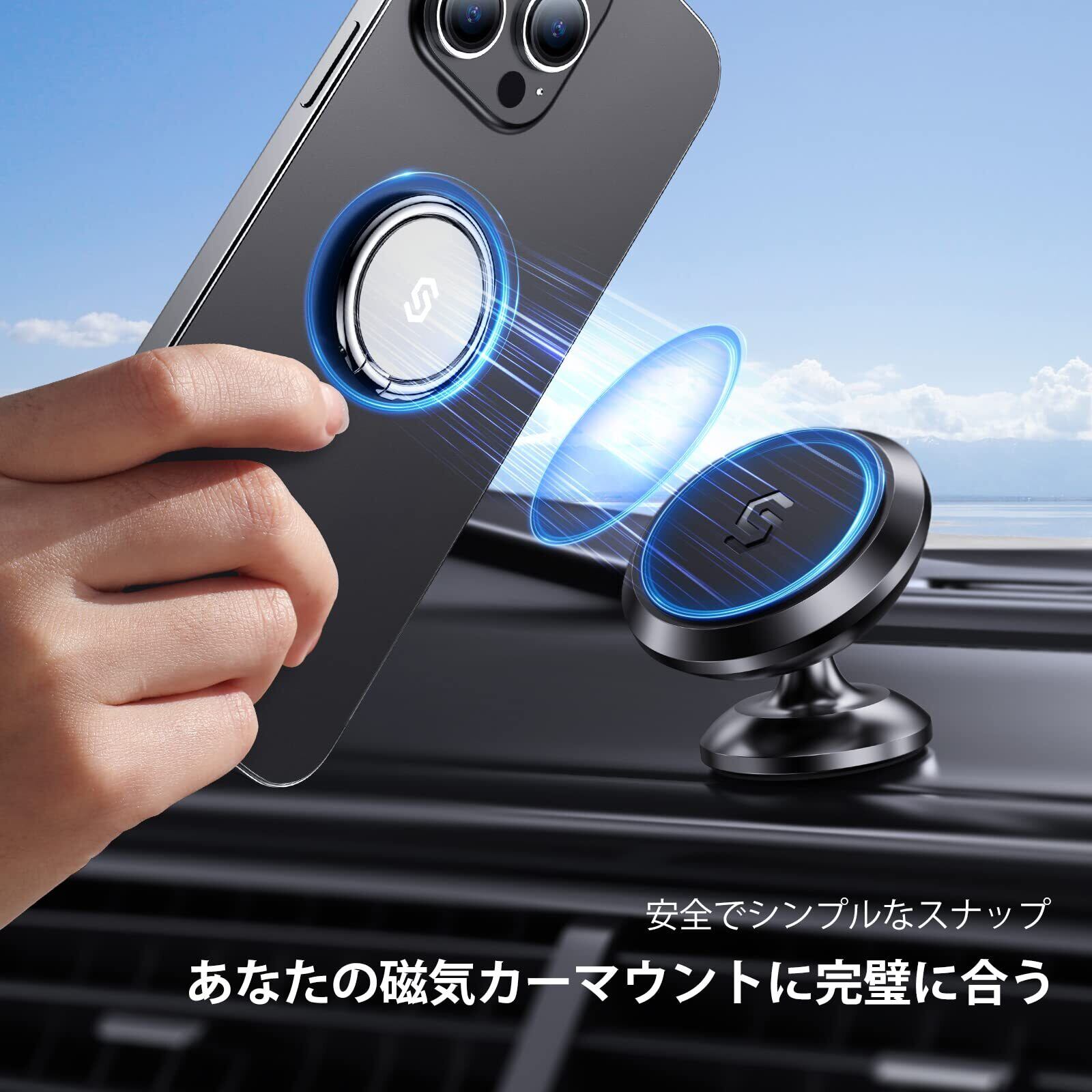 【360度回転】360°回転のベースと180°動くリングで、好きな角度で画面をみることができます。6,000回折りたたんでもリングが緩まないテスト済み。ベース内部に金属を採用し、マグネット式のカーマウントにも取り付け可能です。