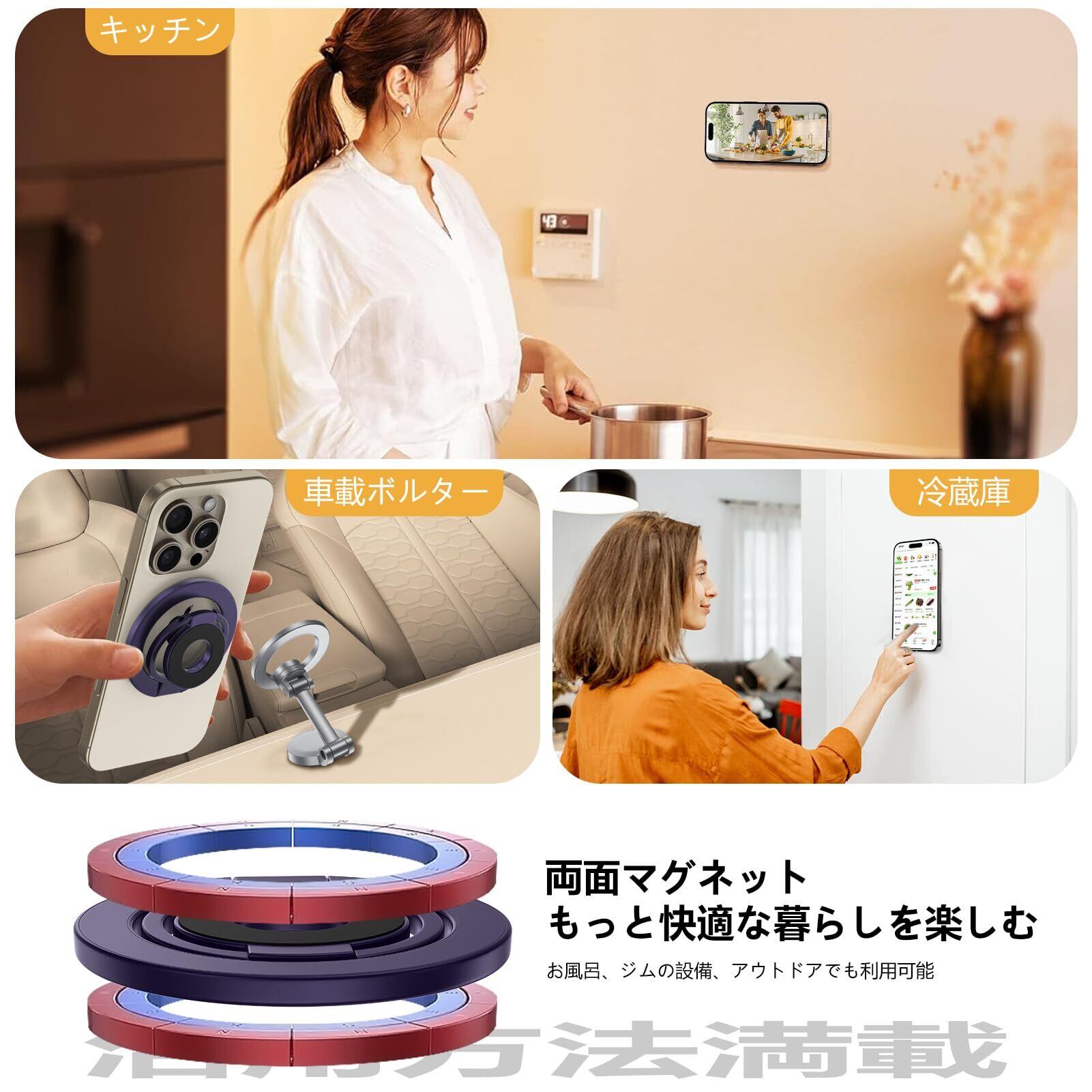 スマホリング マグセーフ 携帯リング 両面マグネット スマホスタンド マグセーフシール1枚付き 強力粘着 磁気増強 MagSafe対応 折り畳み式 アルミ合金 360度回転 簡単着脱 iPhone16 15 14 13 12シリーズ対応 パープル