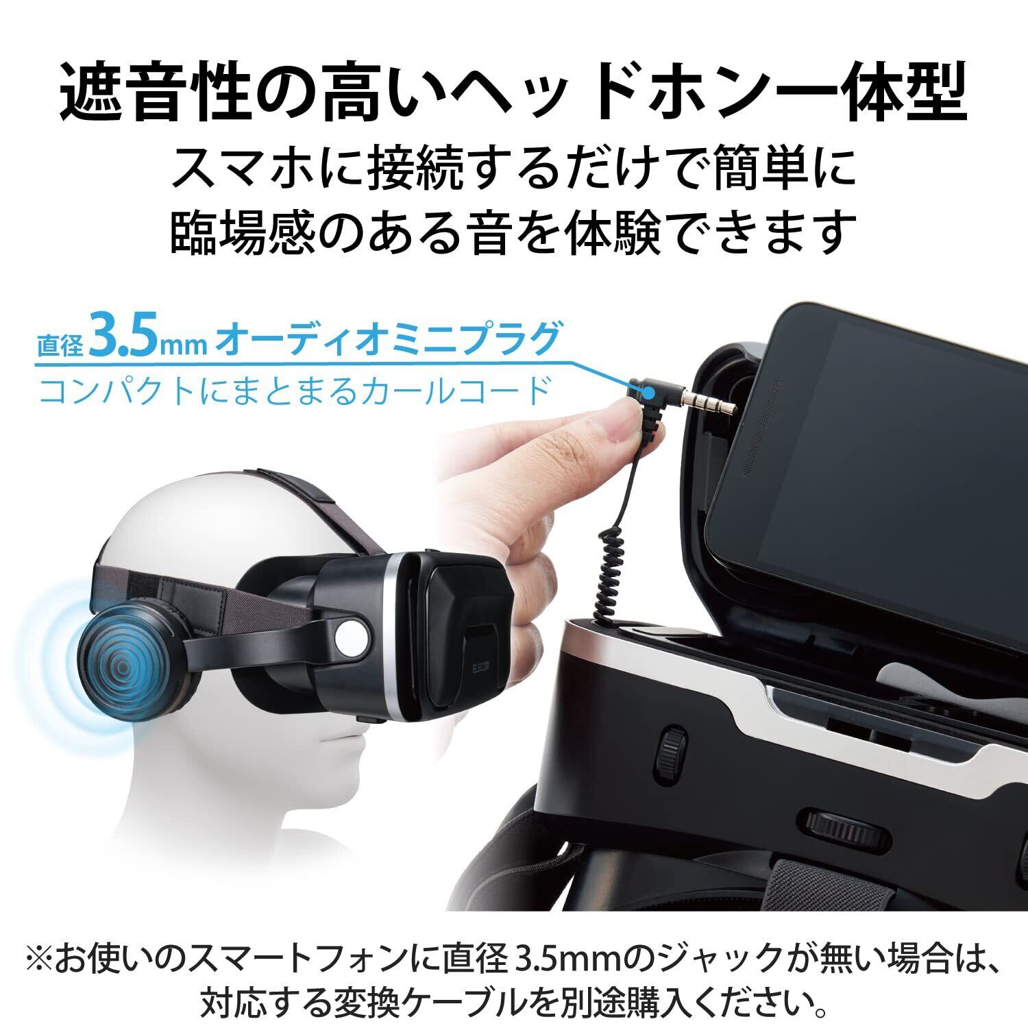 ●スマートフォンで充実したVR(バーチャルリアリティ)体験ができるヘッドホン一体型のVRゴーグルです。●お手持ちのスマートフォンに専用VRアプリをインストールし、本体にセットするだけで、臨場感あふれる映像を上下左右360度全方向楽しめます。●VRコンテンツ再生中に周囲を見渡すと、頭の動きに合わせて視界が360度動き、まるで自分がコンテンツの中にいるかのような臨場感が楽しめます。●遮音性の高いヘッドホン一体型で、圧倒的な没入感を実現します。●3.5φオーディオミニプラグをスマートフォンに接続するだけで、臨場感ある音を体験可能です。●接続コードはコンパクトにまとまるカールコードを採用しています。●※お使いのスマートフォンにφ3.5のジャックが無い場合は、対応する変換ケーブルを別途購入ください。●高域から低域までバランスに優れた音質を再現します。●VRゴーグルをしっかりとフィットさせることができる調節可能なヘッドバンドとヘッドホン部を採用し、ハンズフリーで使用可能です。●長時間の使用でも疲れにくい、柔らかなクッション素材のイヤーパッドを採用しています。●本体上部のダイヤルで、左右の目の幅に合わせて見やすい位置に調節ができる目幅調節ダイヤルを搭載しています。●視界距離ダイヤルを回して、焦点距離の調節ができるピント調節ダイヤルを搭載しています。●内蔵した簡易操作ボタンで、VRゴーグルを装着したままで映像の再生/一時停止、音量調節が可能です。●大画面で鮮明な映像を楽しめる非球面光学レンズを採用しています。●サイズ切り替えアダプターでVRゴーグル開口部を小さくできるので、小型サイズスマートフォンも快適に視聴できます。●新規設計により、4.8~7.0インチの幅広いサイズのスマートフォンに対応しています。●広い開口部設計により、眼鏡を装着した状態でも使用可能です。●※幅142mm以内。●眼鏡の大きさ・形状によっては使用できない場合があります。●開閉しやすいフロントカバー設計で、スマートフォンの操作後すぐに視聴可能です。●※対象年齢は15才以上です。