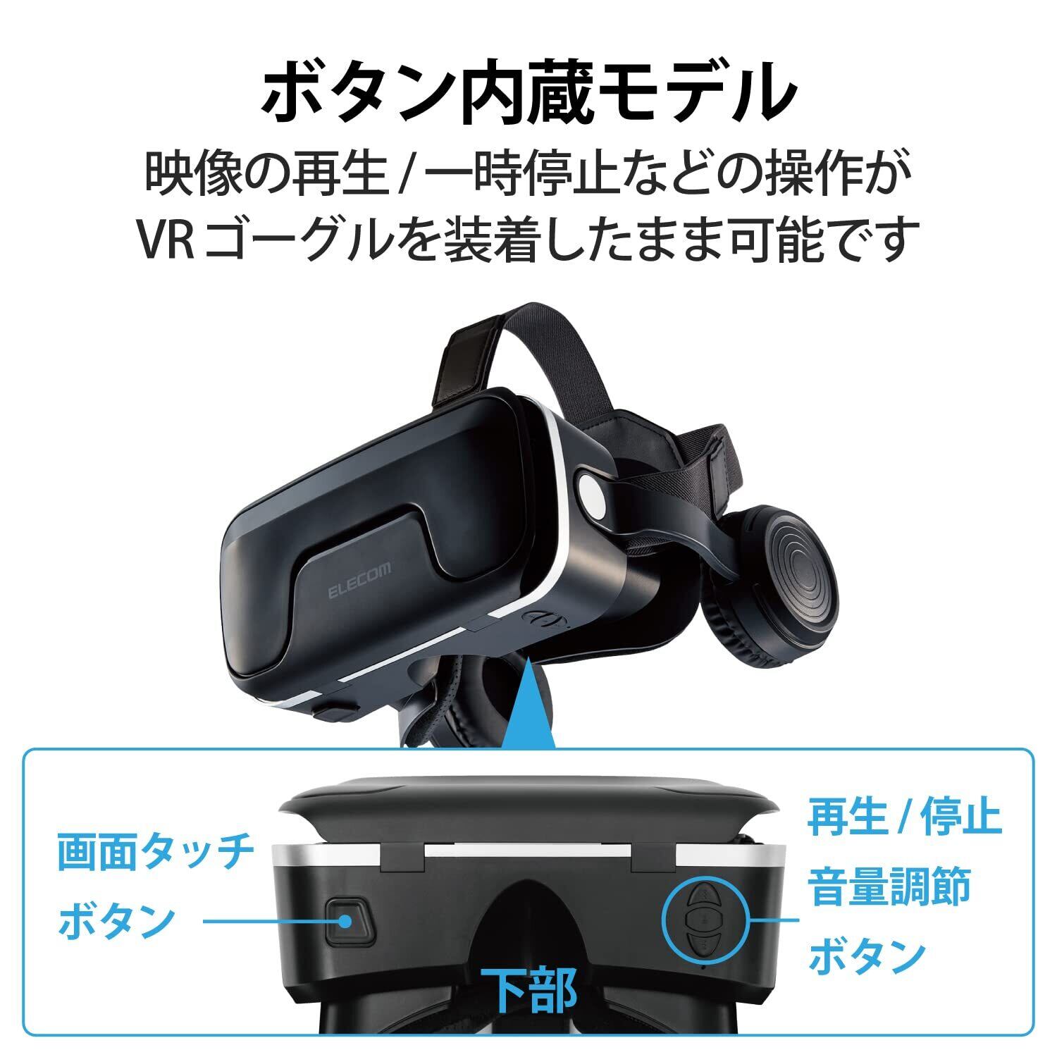 エレコム VRゴーグル VRヘッドセット ヘッドホン一体型 スマホ用 メガネ対応 目幅調節可 ピント調節可 4.8~7インチ iPhone Android対応 3D 非球面光学レンズ Youtube動画など ブラック VRG-EH03BK